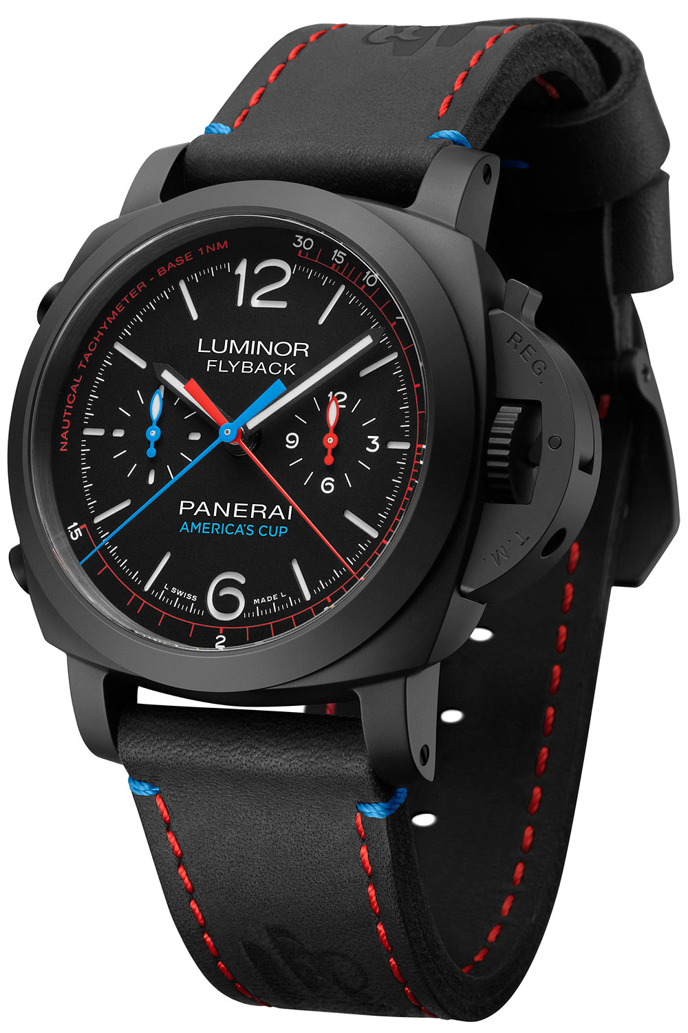 Panerai se une a Oracle Team USA y Softbank Team Japan y es el reloj oficial de la 35ª America’s Cup. Hay cinco relojes como Ediciones Especiales producidas en número limitado, con un movimiento suizo y el diseño italiano se han creado para la ocasión de la 35 ª Copa América. Panerai Luminor Marina 1950 America’s Cup 3 Días Automático Acciaio – 44mm, como el reloj oficial de la 35a America’s Cup. El Panerai Luminor Marina 1950 America’s Cup 3 Días automático (PAM00727) es el reloj oficial de la 35 ª edición de la competición deportiva más antigua del mundo moderno y su limitada a 300 piezas. Panerai Luminor 1950 ORACLE TEAM EE.UU. 3 Días Chrono Flyback Automático Ceramica – 44 mm, por supuesto es para Oracle Team USA. Y el Luminor 1950 Oracle Team USA 3 días Chrono Flyback Automatic (PAM00725) es un cronógrafo con la función flyback, que permite poner en movimiento las manos del cronógrafo móvil y reiniciarlas instantáneamente con una sola presión, sin necesidad de detenerla y moverla a cero.