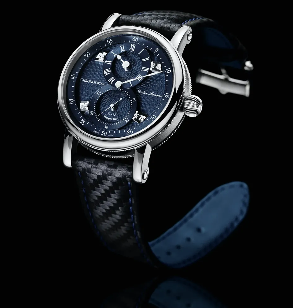 Cualquiera de estos puede ajustarse a la muñeca por medio de una correa de piel de cocodrilo, o de becerro con un patrón “tejido” que simula fibra de carbón para un estilo inigualable.