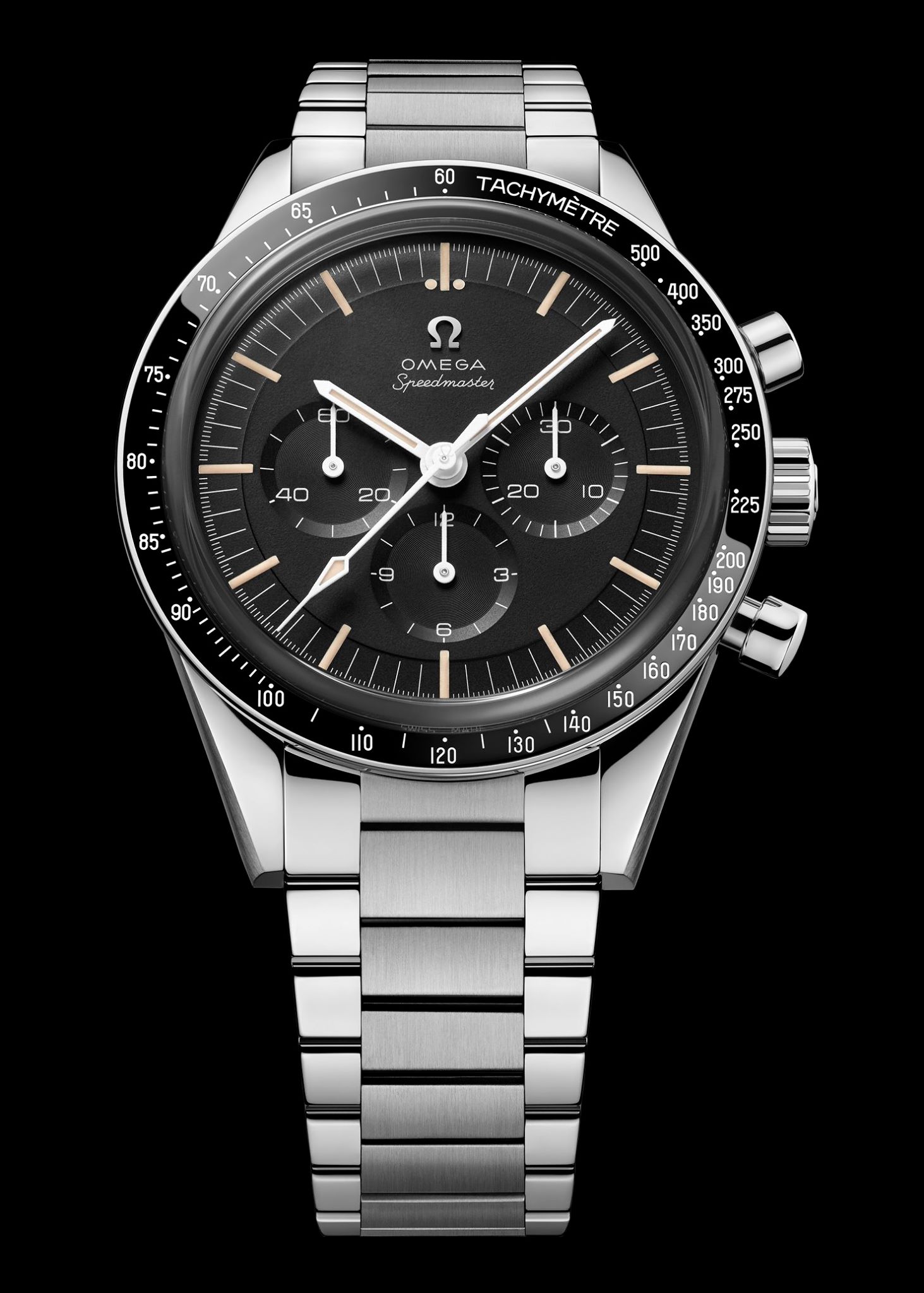Dotado de una caja de 39.7 mm de diámetro (acero inoxidable), que recibe la influencia del Speedy de tercera generación portado por Ed White. Luce un bisel de cerámica (ZrO2), que luce una escala de taquímetro en esmalte blanco. La carátula en color negro descubre las manecillas típicas de los Moonwatch, mientras que los totalizadores para el segundero pequeño, el contador de 30 minutos y el de 12 horas destacan por igual. La trotadora del crono luce un tratamiento luminiscente color beige, al igual que indicadores y agujas para horas y minutos.