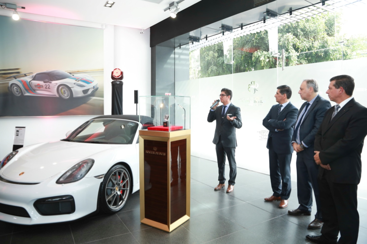 Así pues, hace unos días fuimos partícipes de la presentación dual de una colaboración natural, un reloj de alta manufactura y una pieza mecánica propulsada por un motor a combustión de alto refinamiento. Jorge Puentes, Director de Roger Dubuis América, y Francisco Torres, Director de Porsche México, encabezaron la ceremonia.
