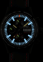 El diseño, las líneas y el color de la carátula permiten que las funciones del reloj destaquen. En la oscuridad, los 66 microtubos de gas iluminan la carátula creando una impresionante coreografía luminosa; los marcadores horarios emiten un resplandor azul y el de las 12 es color naranja, las funciones de cronógrafo se iluminan de verde y las tres agujas, horas, minutero y segundero, proyectan una luz amarilla.