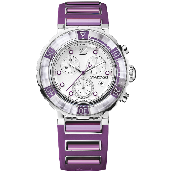 La línea Octea sport, chic y deportiva, es una de las líneas de relojes más populares de Swarovski. El reloj Octea sport, que combina elementos lineales con un material exclusivo y un cristal finamente tallado, tiene un atractivo elegante y resulta versátil y funcional. Este año se han añadido dos nuevas tonalidades de moda a la llamativa paleta de colores de esta línea de relojes de tendencia: un profundo tono moca y un elegante púrpura. Los 6 cristales tono sobre tono que adornan la correa y el bisel de cristal facetado giratorio unidireccional integrado, ejemplifican la maestría de Swarovski en la creación de relojes.