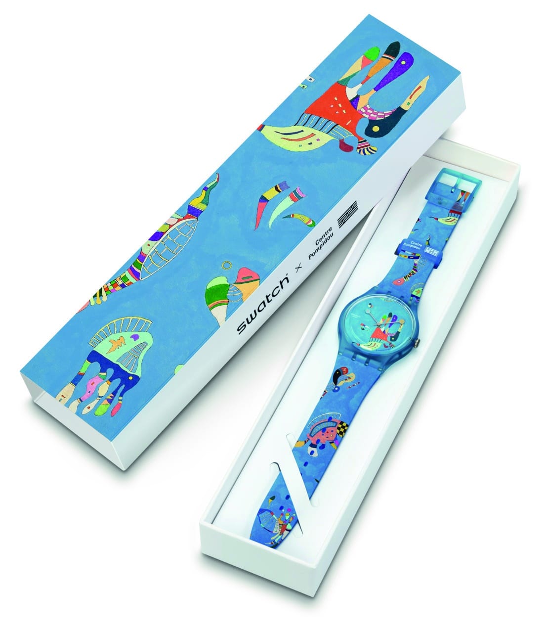 Por su parte, Swatch desde 1985, ha lanzado una larga serie de relojes exclusivos Swatch Art Special. Y, en 2018, subió de nivel gracias a su serie Museum Journey, que permitió a Swatch acceder a las obras maestras de los museos para convertir las obras de arte más emblemáticas del mundo en algo alcanzable para todos. Hasta el momento ha logrado colaboraciones con el Rijksmuseum de Ámsterdam, el Museo Nacional Thyssen-Bornemisza de Madrid, el Musée du Louvre de París, el Museum of Modern Art (MoMA) de Nueva York y, ahora, con el Centre Pompidou.