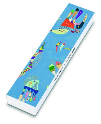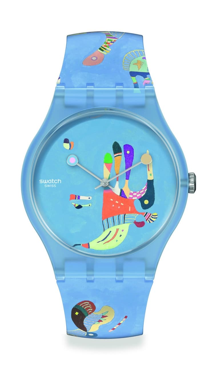 La fascinación del artista por el color azul queda de manifiesto en esta obra. Swatch reproduce la técnica de pintura profunda y texturizada de Kandinsky en el diseño New Gent y muestra muchos personajes fascinantes que habitan en el cuadro original.
