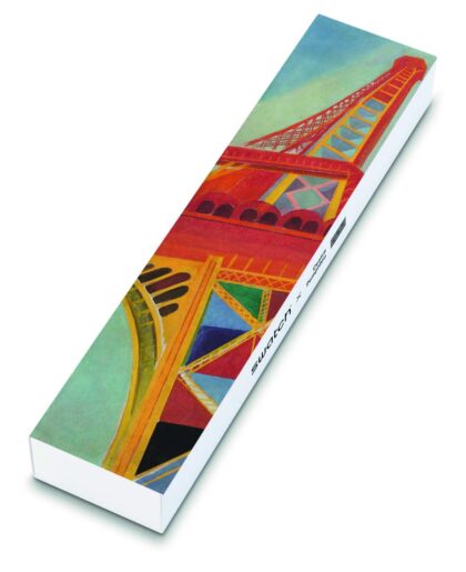 En esta pieza Swatch reinventa la famosa representación en ángulo que el artista realizó del monumento de París en todo su esplendor. Las proporciones del reloj Gent se mantienen fieles al original de Delaunay, mientras que, en la carátula, la correa y las agujas se utilizan rojos, amarillos, naranjas y azules vibrantes.