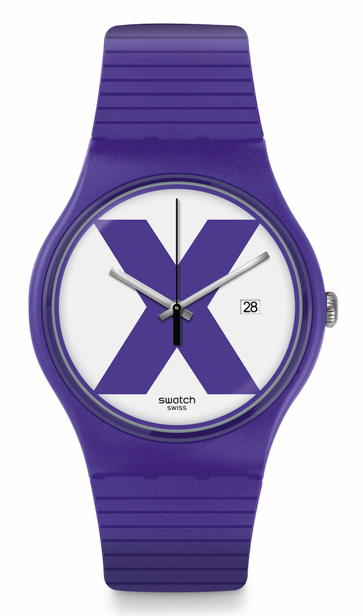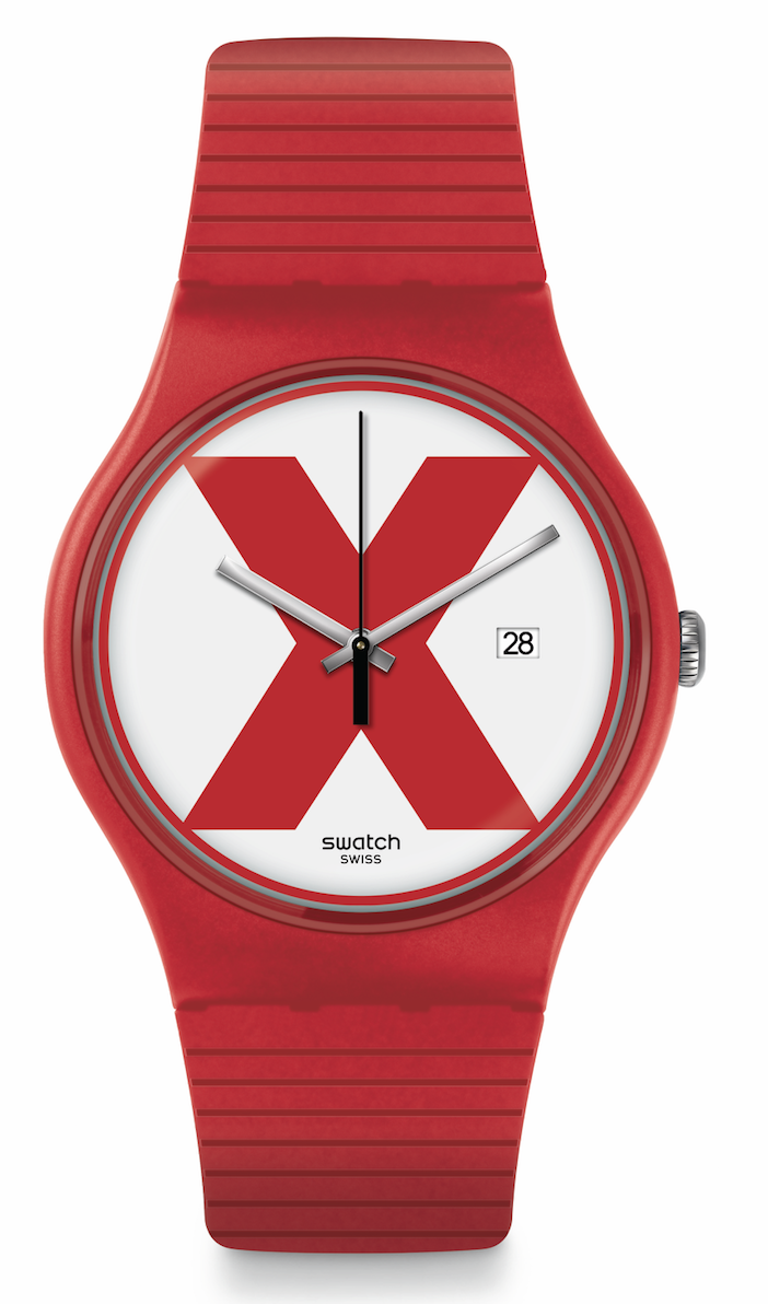 La colección The X Vibe de Swatch está conformada por cinco diseños que reviven los icónicos modelos Swatch, en color rojo, negro, morado, verde con una X en la carátula
