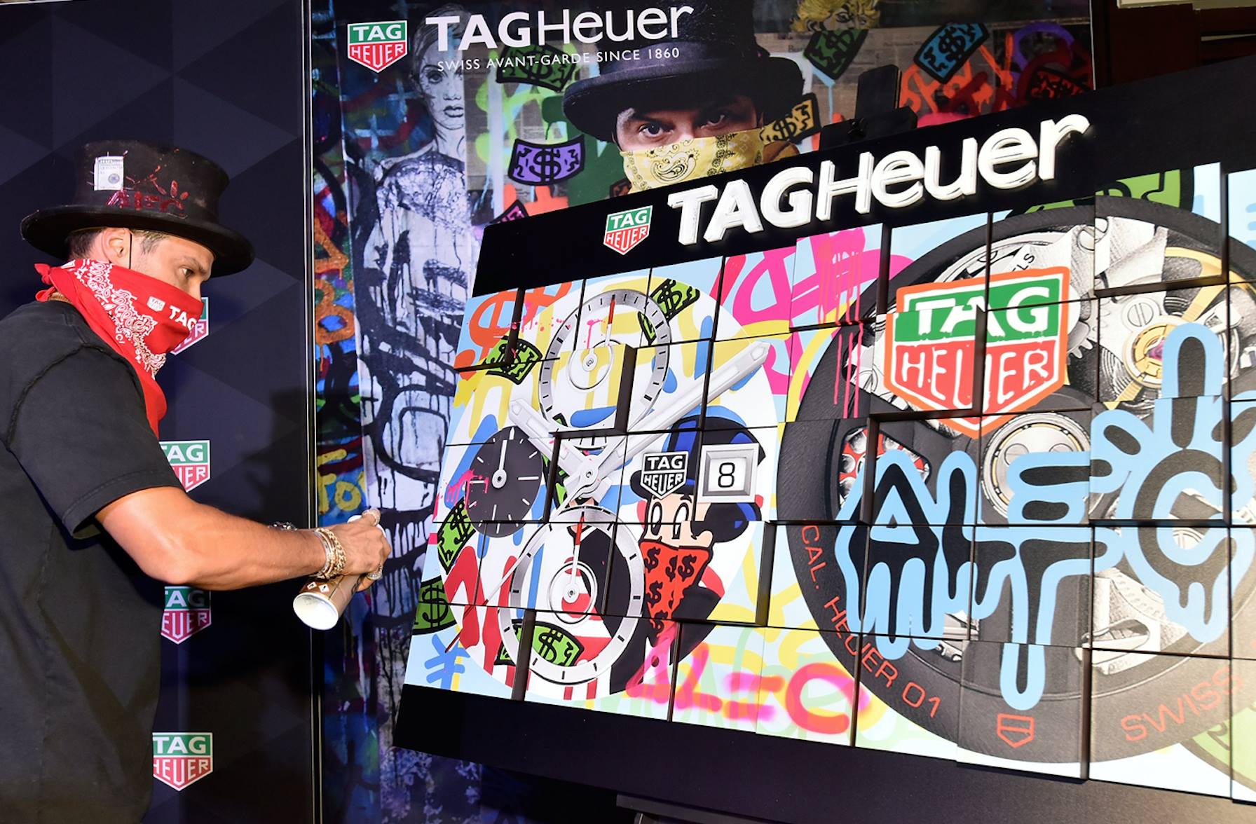 En una boutique de TAG Heuer, decorada por 17 pinturas y esculturas que reflejan la amistad de la Casa Relojera con Alec Monopoly, se dieron a conocer dos relojes pertenecientes a las colecciones de TAG Heuer Fórmula 1 y Carrera. Estos nuevos modelos se caracterizan por tener al pequeño banquero con un pañuelo rojo en la cara que arroja efectivo verde sobre la carátula. Estarán disponibles con un fondo en amarillo, azul y rojo.