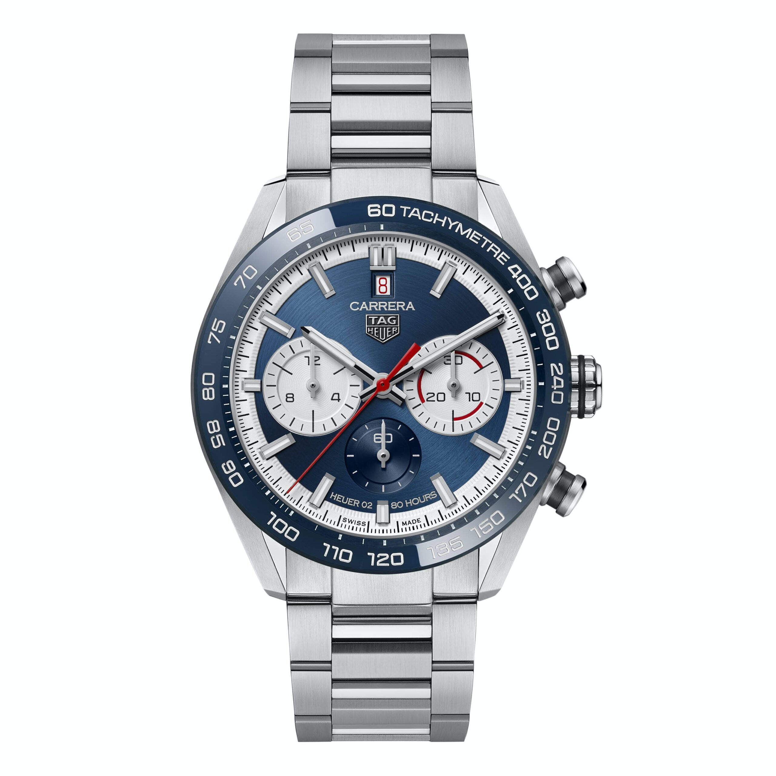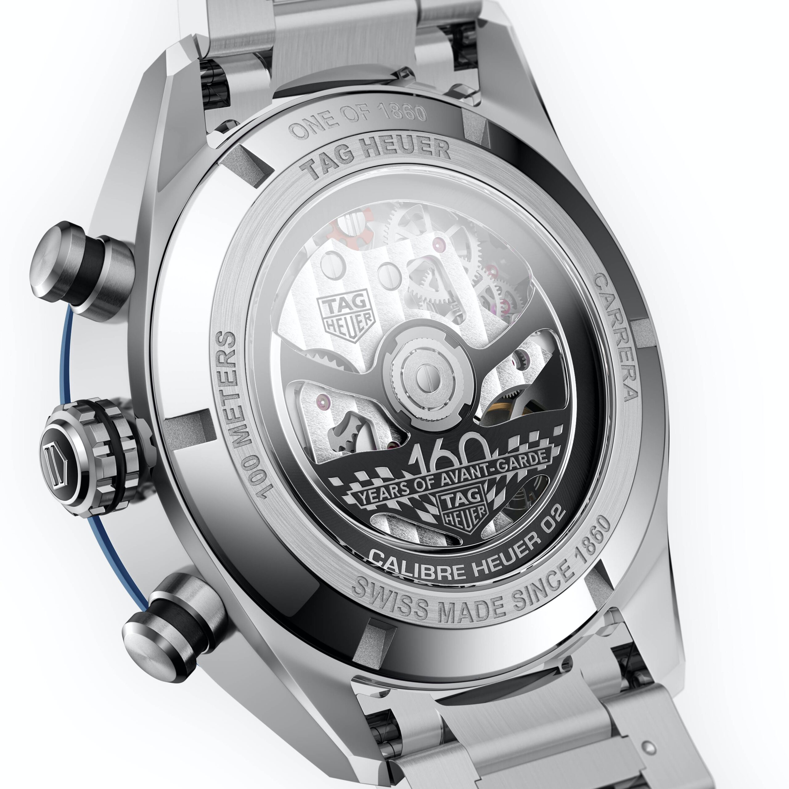 La actualización no sólo echa mano de nuevos materiales tecnológicamente avanzados como el bisel de cerámica negra o azul dependiendo la versión. Sino también de un movimiento de vanguardia, el Heuer 02 de manufactura.