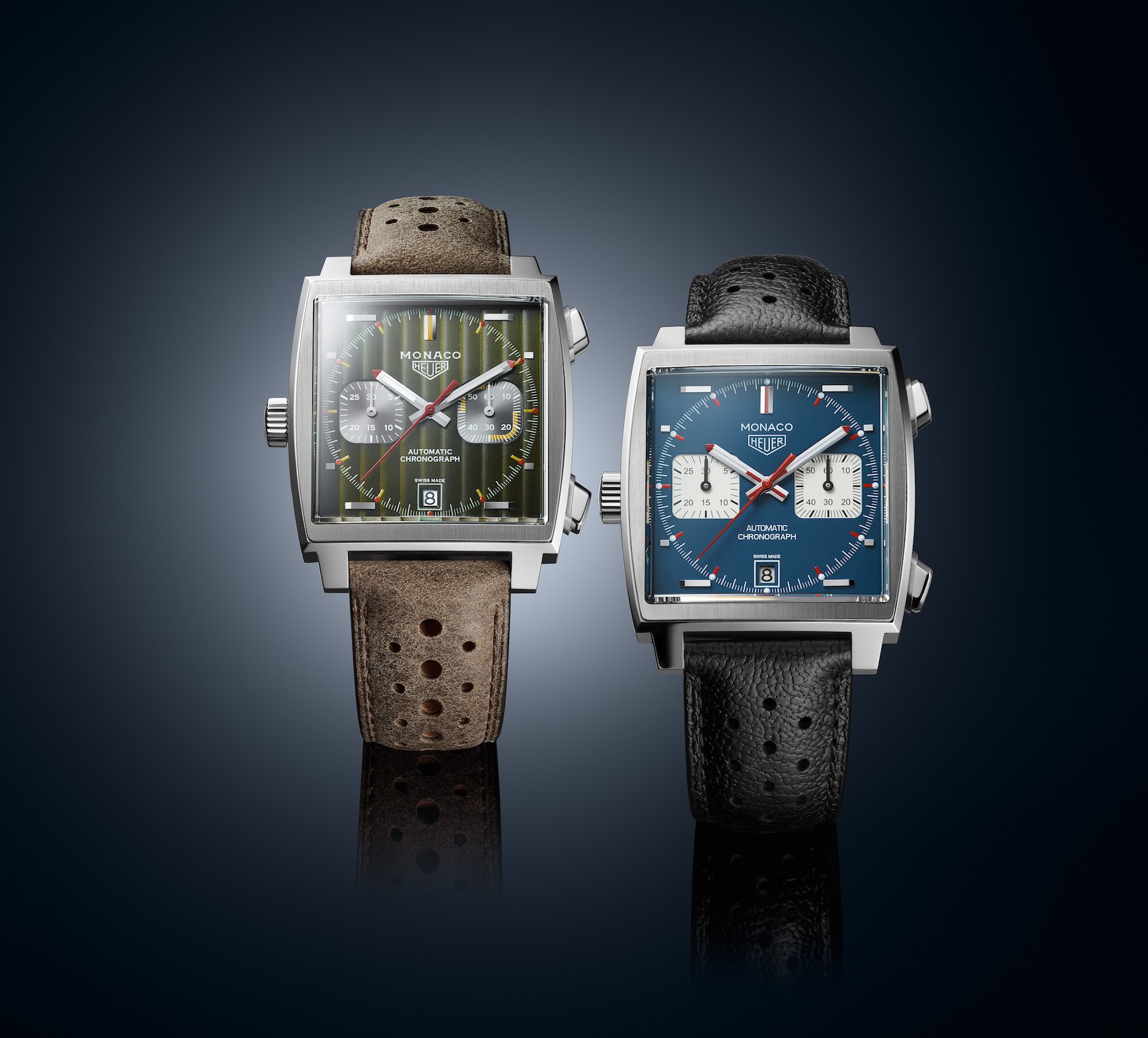A Siffert lo relevó The King of Cool, Steve McQueen, quien tomó protagonismo en esos años tras haberse consagrado como ícono de la velocidad con Bullitt y filmar Le Mans en 1971 con un Monaco en el pulso. El reloj rompe totalmente con los códigos estéticos de la relojería tradicional. Destaca por su gran caja cuadrada de ángulos rectos, su carátula de color azul metálico, su cristal de plexiglás abombado y, sobre todo, su corona situada a la izquierda, que en aquella época significaba que el reloj se remontaba de forma automática. En el interior debutó el Calibre 11, anteriormente llamado Chronomatic, movimiento mecánico automático de gran ejecución en el interior de una caja cuadrada. Este motor también animó a algunos Carrera y Autavia de la época.