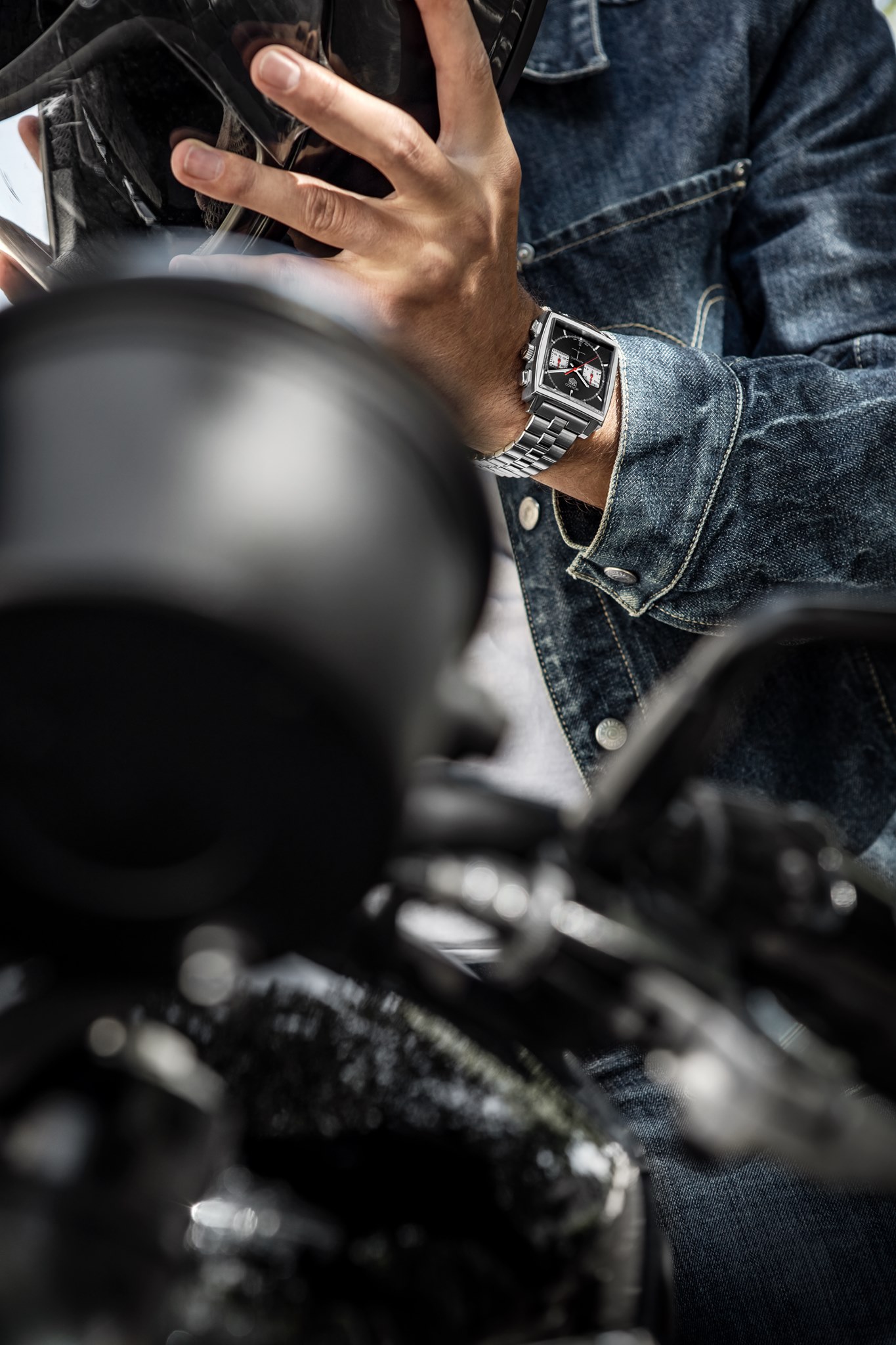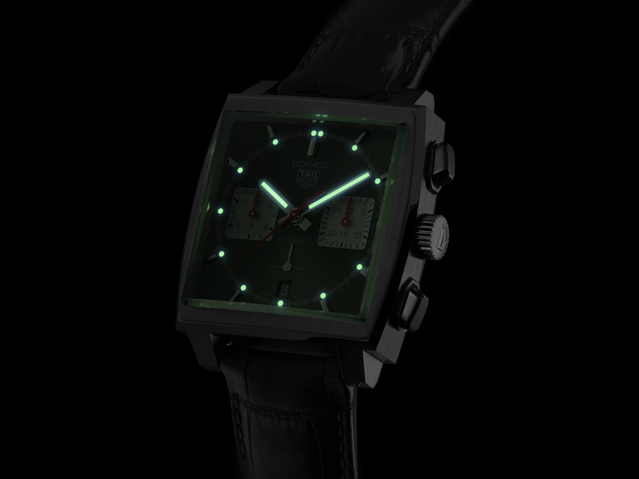 El reloj rompe totalmente con los códigos estéticos de la relojería tradicional. Destaca por su gran caja cuadrada de ángulos rectos, su carátula de color azul metálico, su cristal de plexiglás abombado y, sobre todo, su corona situada a la izquierda, que en aquella época significaba que el reloj se remontaba de forma automática. En el interior debutó el Calibre 11, movimiento mecánico automático de gran ejecución en el interior de una caja cuadrada. Este movimiento de cronógrafo automático también se empleó en la colección Carrera y en la famosa Autavia, pero sin duda será recordado con Monaco, hoy y siempre.