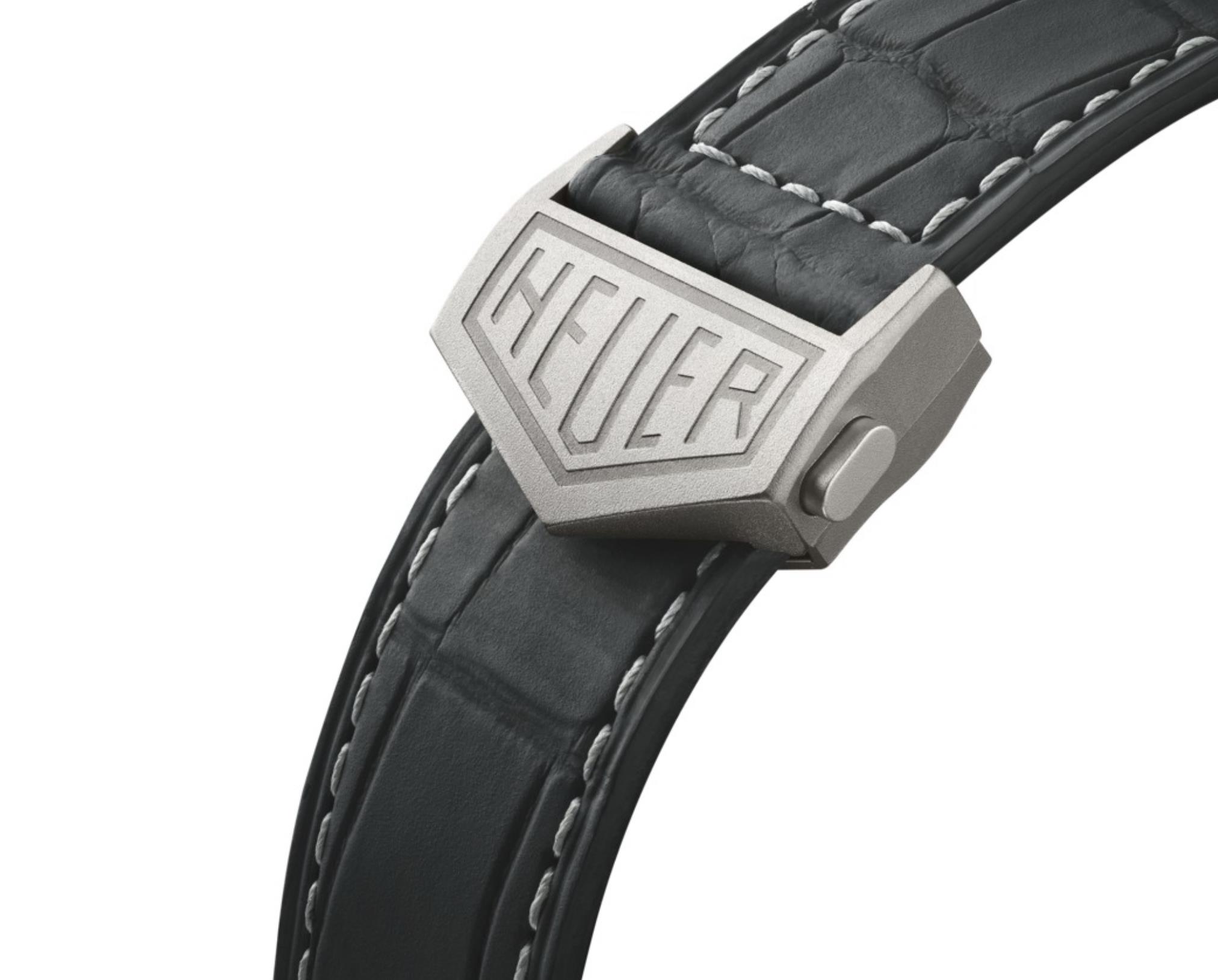 El mundo del automovilismo también inspiró el aspecto de goma de la deportiva correa de cocodrilo antracita y recuerda las ranuras de los neumáticos de los coches de carreras. Los índices y totalizadores están recubiertos con Super-LumiNova® para garantizar una visibilidad óptima en cualquier condición.