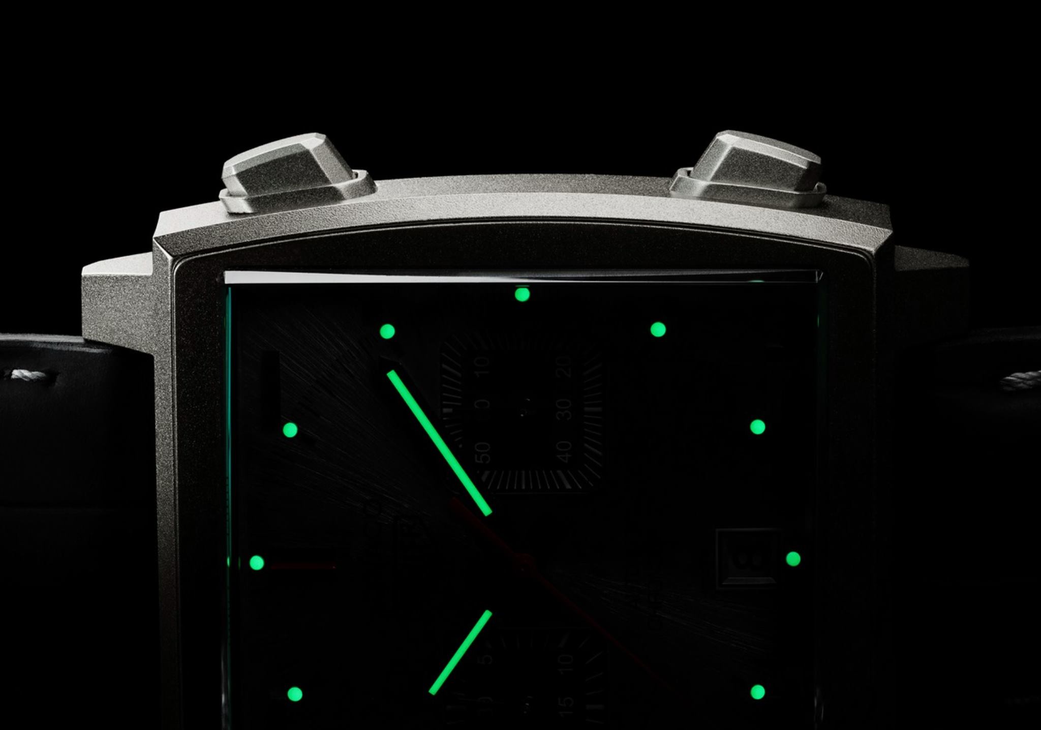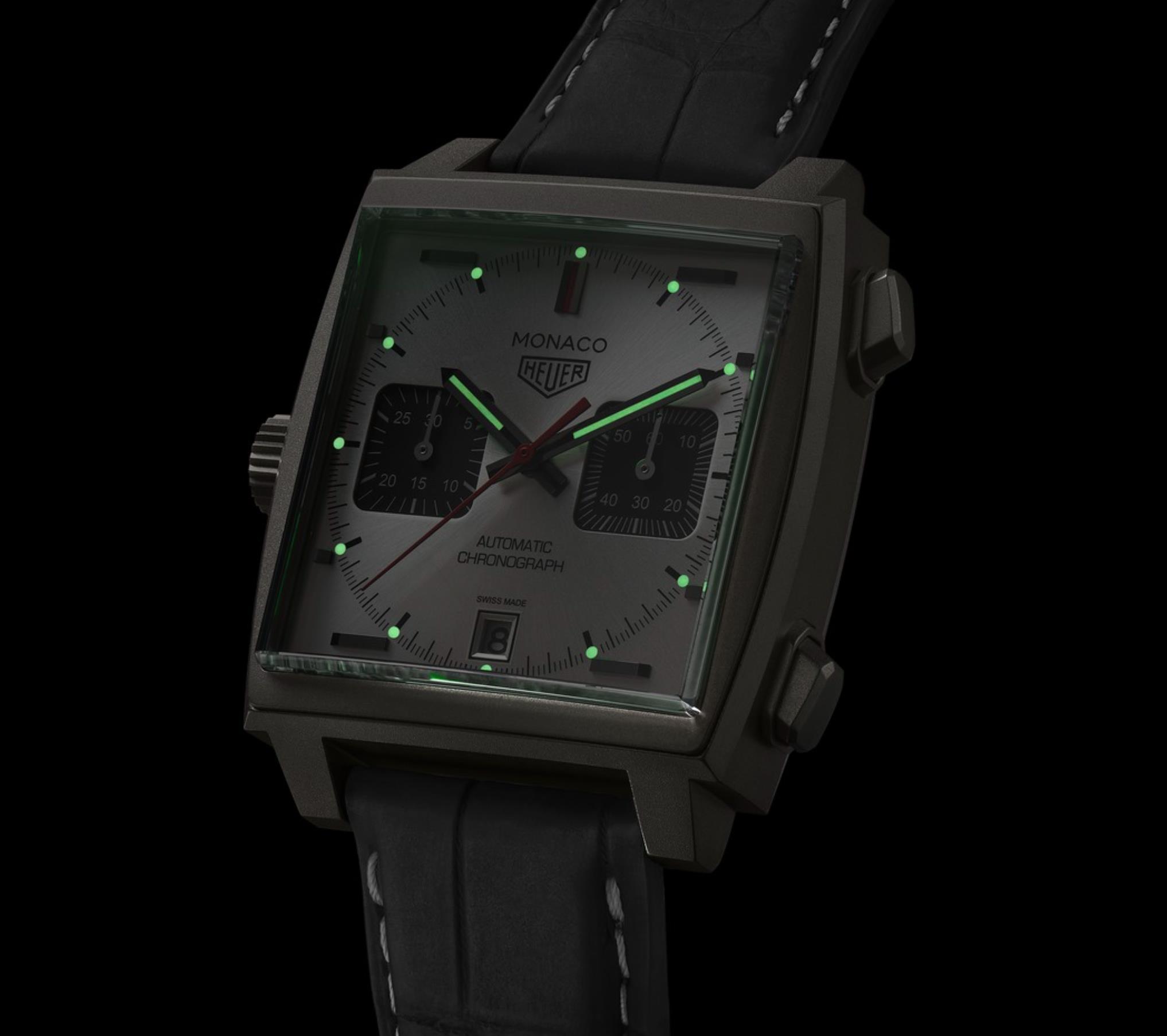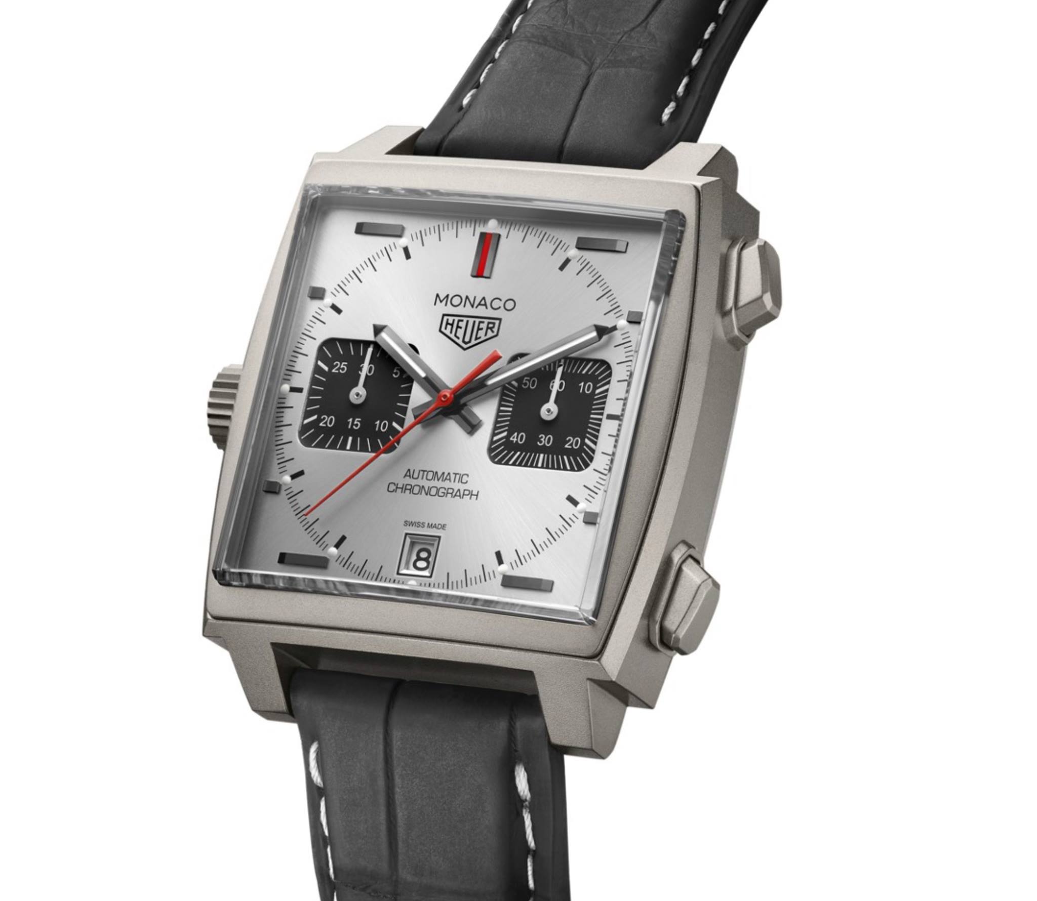 Este nuevo TAG Heuer Monaco va más allá de la norma y apuesta por el titanio, un material poco utilizado en esta colección. La caja está hecha de titanio de grado 2, conocido por ser excepcionalmente ligero y resistente, refinado mediante chorro de arena para obtener un acabado mate que le da al reloj una belleza cruda. Además, ofrece una carátula plateada y reluciente que complementa perfectamente la caja de titanio. Una edición poco común en la colección TAG Heuer Monaco, la carátula luminosa ofrece el beneficio de una muy buena visibilidad y un atractivo contraste con los totalizadores, índices y manecillas del reloj.