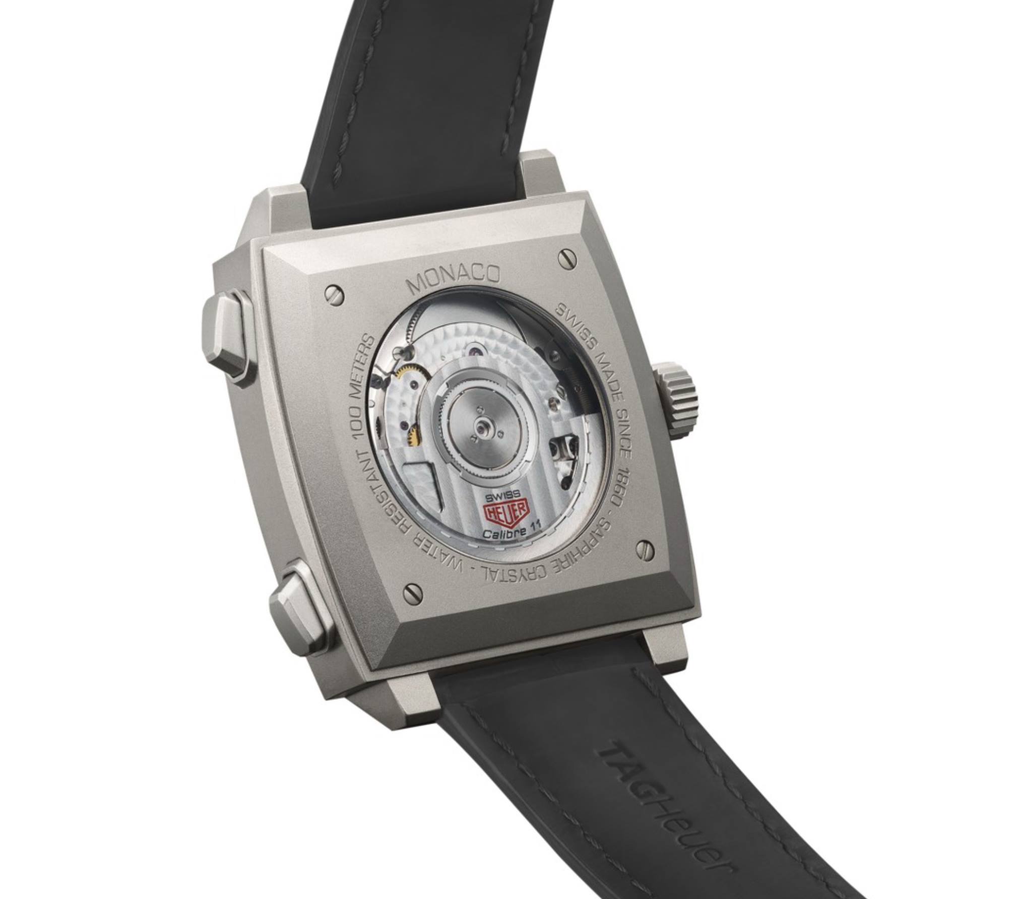 Por último, este TAG Heuer Monaco Titan de Edición Especial está equipado con una versión moderna del famoso movimiento cronógrafo automático Calibre 11 que celebró su debut en el Mónaco original de 1969. Esta reinterpretación del movimiento se remonta a la caja de 1969 con su logotipo grabado “Monaco Heuer”.
