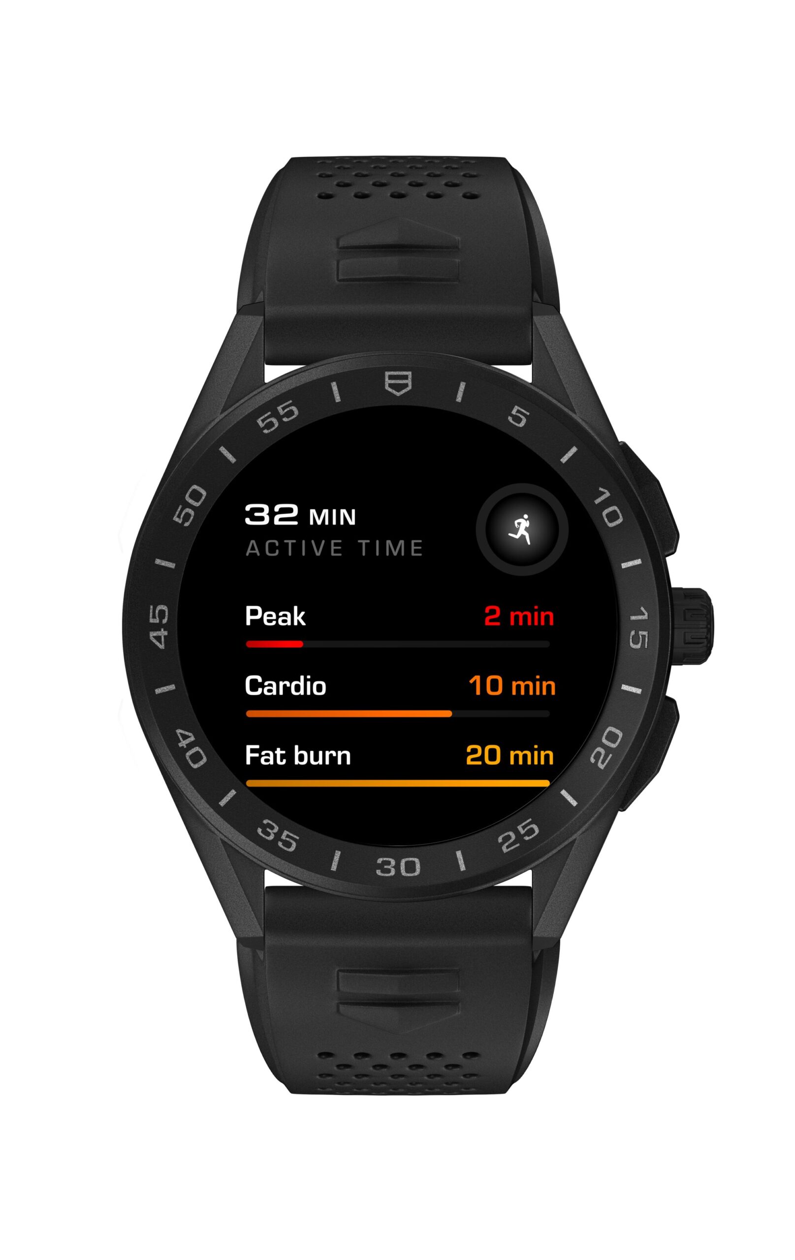 Con la aplicación TAG Heuer Wellness, el progreso se registra con precisión en un barómetro que muestra el nivel de actividad durante la semana. Con su descripción detallada de los minutos dedicados a quemar grasa, cardio y zonas pico, los usuarios pueden ver de un vistazo cómo cada minuto activo beneficia a sus cuerpos.