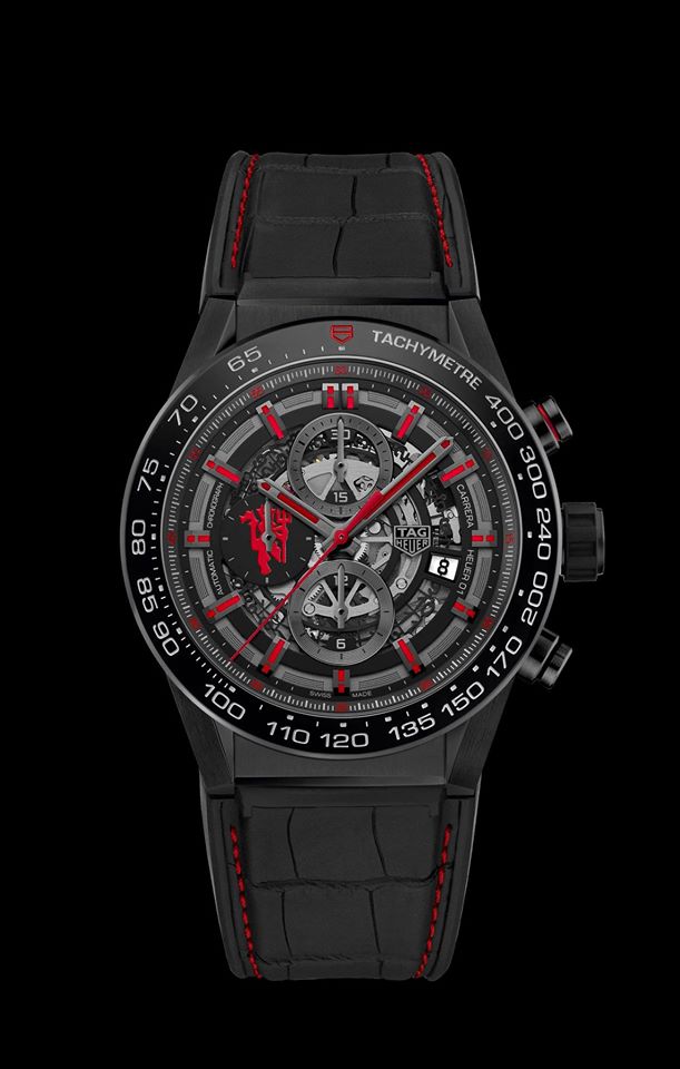 Desarrollado bajo los códigos propios de la colección, todo lo que se esperaba que sucediera con esta edición es tomado en cuenta: caja de acero inoxidable de 43 mm de diámetro con revestimiento PVD negro y vivos en rojo destacan por su deportividad y personalidad “Red Devil”. Mientras que los totalizadores presentan el logo del Manchester United en punto de las 6 horas en color blanco. Al interior late un calibre de cuarzo de alta precisión, y la caja se asegura contra el agua y presión de hasta 200 metros gracias a un fondo sólido atornillado que luce el escudo del equipo. Se abraza al pulso gracias a una correa de caucho negro con vivos en rojo y a una hebilla de hebijón de acero.