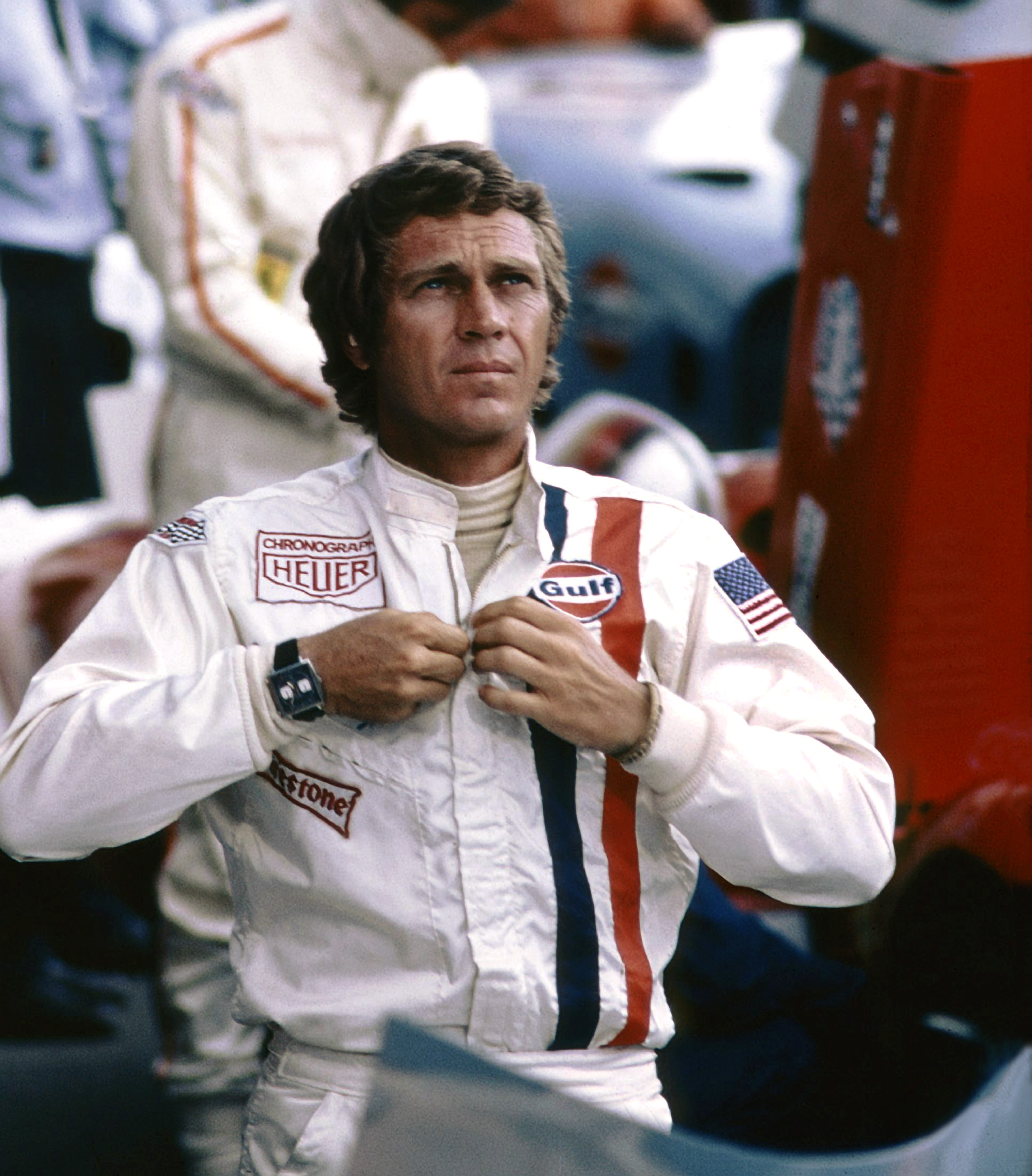 En la película de Le Mans en 1970, McQueen invitó a Siffert como asesor técnico para que le enseñara a conducir el Porsche 917K del Gulf Team protagonista (vehículo que marcaría el inicio de la más exitosa trayectoria de Porsche en las 24 Horas de Le Mans, ganando de 1968 a 1970). McQueen portó el Monaco de la marca durante la filmación, un reloj nacido como el primer cronógrafo automático en una caja cuadrada, en 1969. Historia completa, aquí.