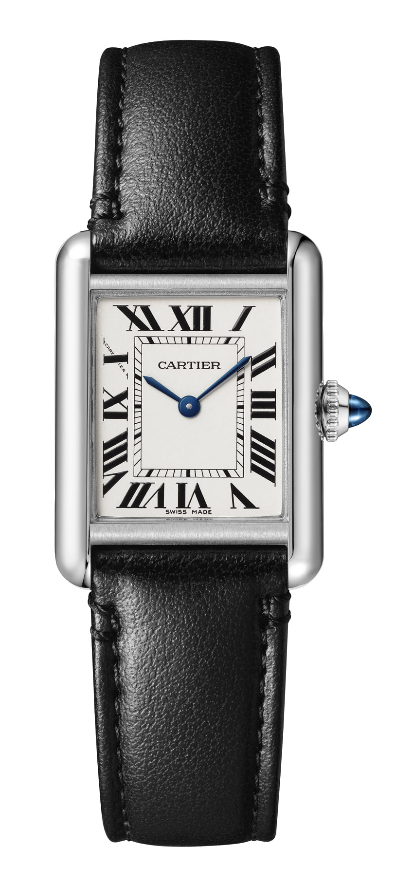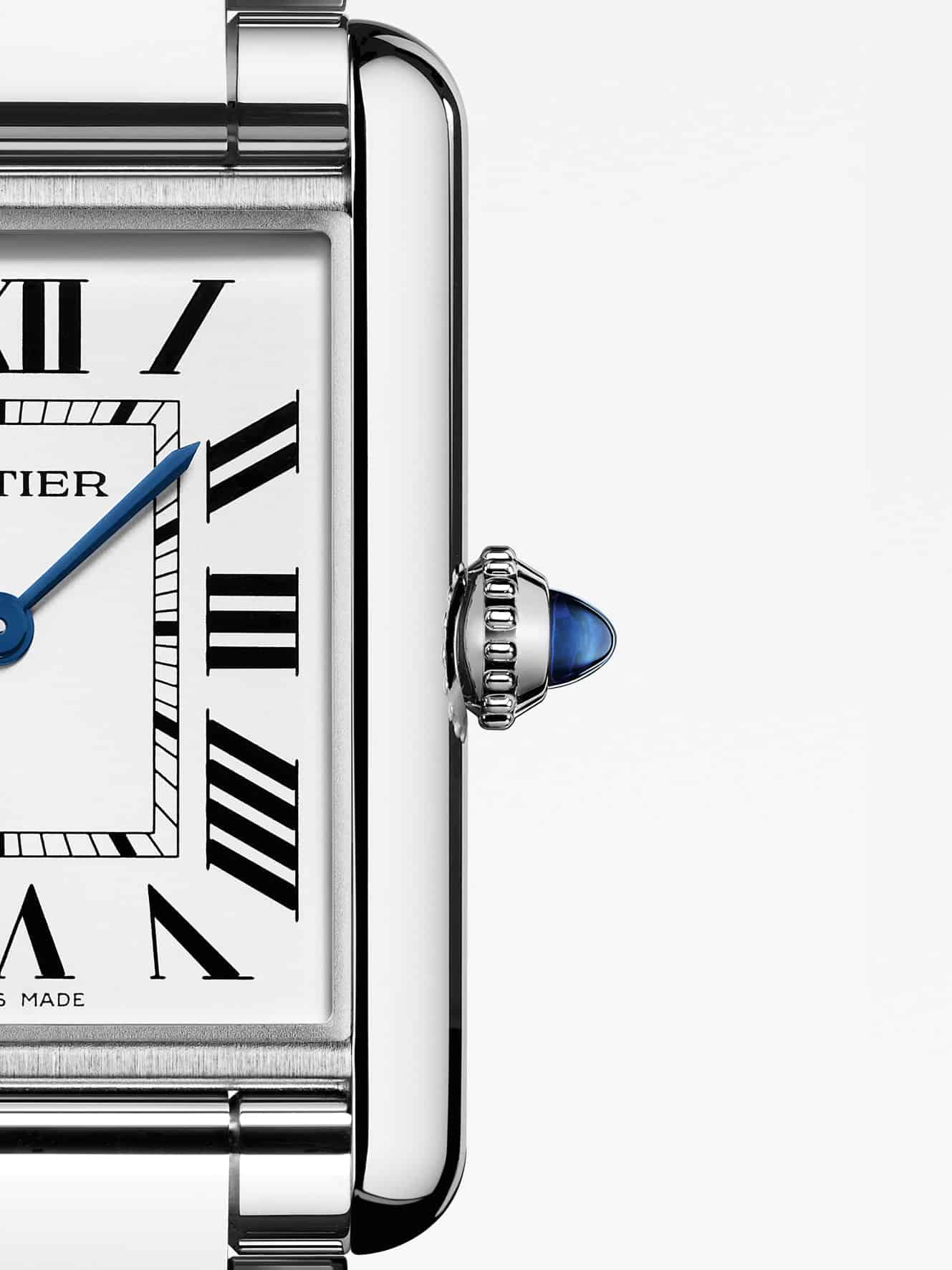 Minutería de ferrocarril, cabujón de zafiro, números romanos, Louis Cartier sentó las bases de una firma estética relojera de la Maison cuya tradición perpetúan las versiones más recientes con la precisión de sus matices.