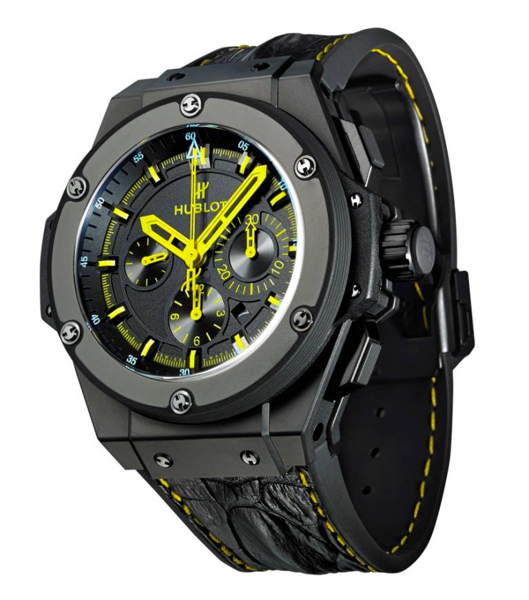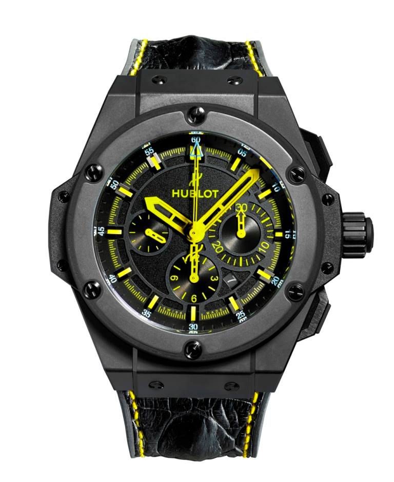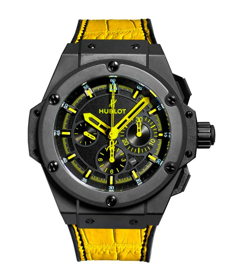 Limitada a 26 piezas, el King Power 692 Bang está disponible en cerámica negra negro e incluye correas amarillas y negras intercambiables, inspirados en los colores de los emblemáticos taxis de la ciudad de los rascacielos. En el reverso de la caja se aprecia grabada la fachada de la boutique de Madison Avenue, un edificio diseñado por el famoso arquitecto Peter Marino e inspirado en las grandes y lujosas residencias del histórico Upper East Side de Nueva York.