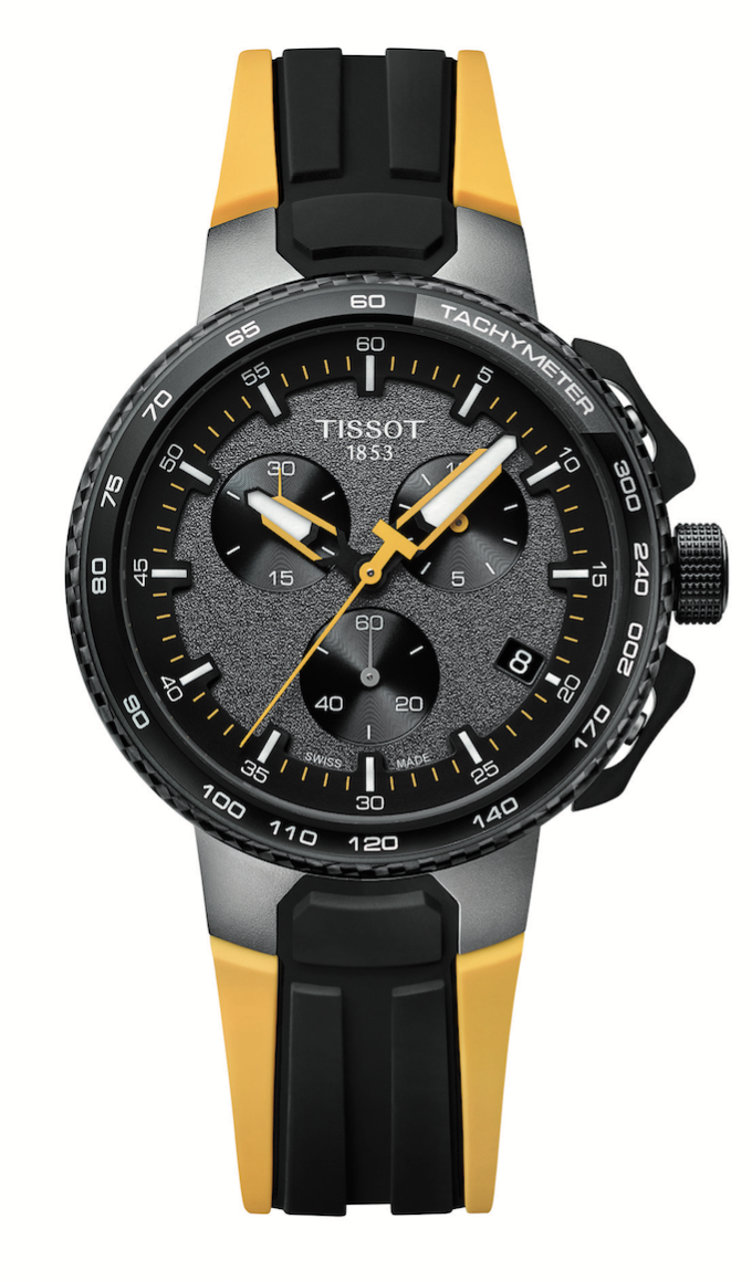 El diseño inconfundible del nuevo Tissot T-Race Cycling Tour de France, se caracteriza una vez más por portar los colores estelares de la carrera y el logotipo oficial de la Tour de France en la parte trasera del reloj.