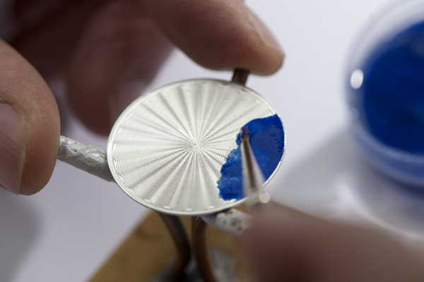Técnicas como el esmalte cloisonné, champlevé, grand feu, flinqué, esmalte miniatura. Cada una de ellas emplea uno o más artistas dedicados primero al desarrollo del diseño y luego a la fabricación, que contempla la adición de esmalte vitrificado y diferentes procesos de horneado a más de 800 grados centígrados, lo cual genera dos resultados: el primero es derretir y fijar el color a la superficie sobre la cual se aplica el esmalte. Y el segundo es el de modificar el color haciéndolo más oscuro e intenso con los diferentes procesos de horno. Es por ello que los colores más claros deberán añadirse al final. Vale la pena destacar que el esmalte se emplea en la orfebrería desde hace 3 mil 500 años, y en la relojería desde el siglo XVII.