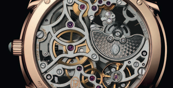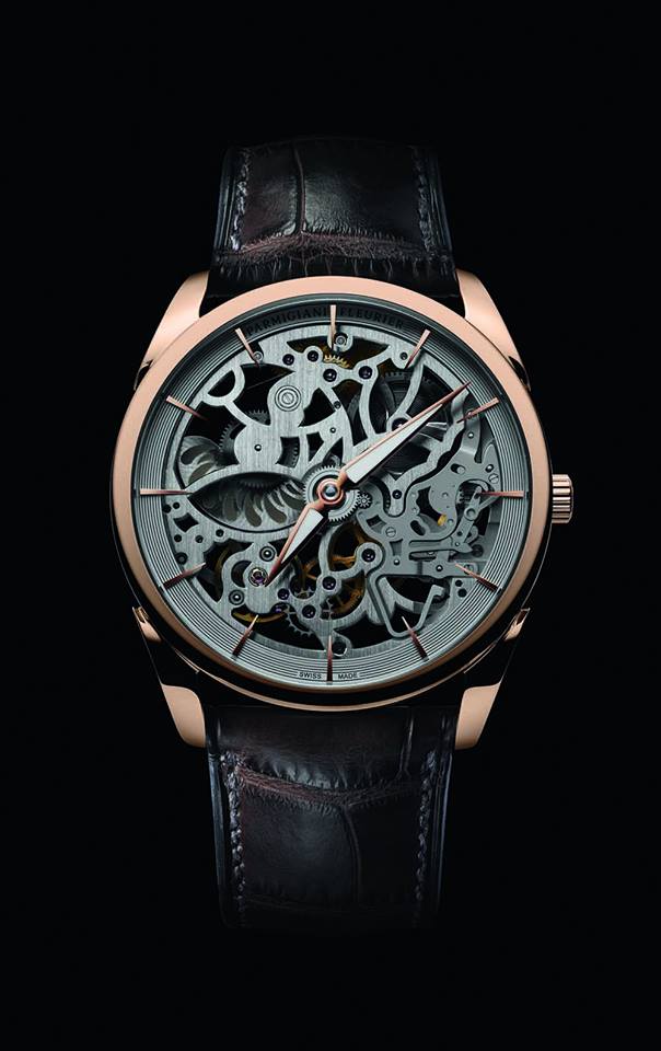 El calibre PF705 de construcción extra-plana ha sido esqueletado a su máximo, y cada una de las platinas ha sido trabajada manual e individualmente a fin de crear una estética de suma elegancia, pero que conserve la pureza y el ADN de la marca. Asimismo y, contrario a lo que pueda pensarse, el conjunto sí cuenta con una carátula, que pasa desapercibida por tratarse de un cristal de zafiro completamente traslúcido, y únicamente montado en en aro metálico que servirá de base para la colocación de los índices aplicados en oro blanco o rosa dependiendo la configuración de su elección.
