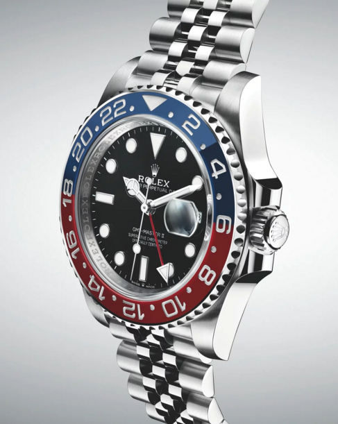Esta referencia es sin duda una de las más reconocidas por los coleccionistas y apasionados de la relojería contemporánea. Fue liberada la información respecto a esta pieza que, si bien fue recuperada en 2014 con caja de oro blanco. Ahora se entrega en acero inoxidable (Oystersteel) con brazalete Jubilee y nuevo calibre. Si bien el nuevo GMT tiene el mismo bisel bidireccional Cerachrome en azul y rojo con indicación de 24 horas, día y noche, y contrasta con la carátula color negro, esta pieza luce un brazalete Jubilee que recupera algunos modelos del surgimiento de esta pieza. Además, se dota de una extensión de confort que añade 5 mm para los días de verano o para los momentos en los que hemos subido de peso.