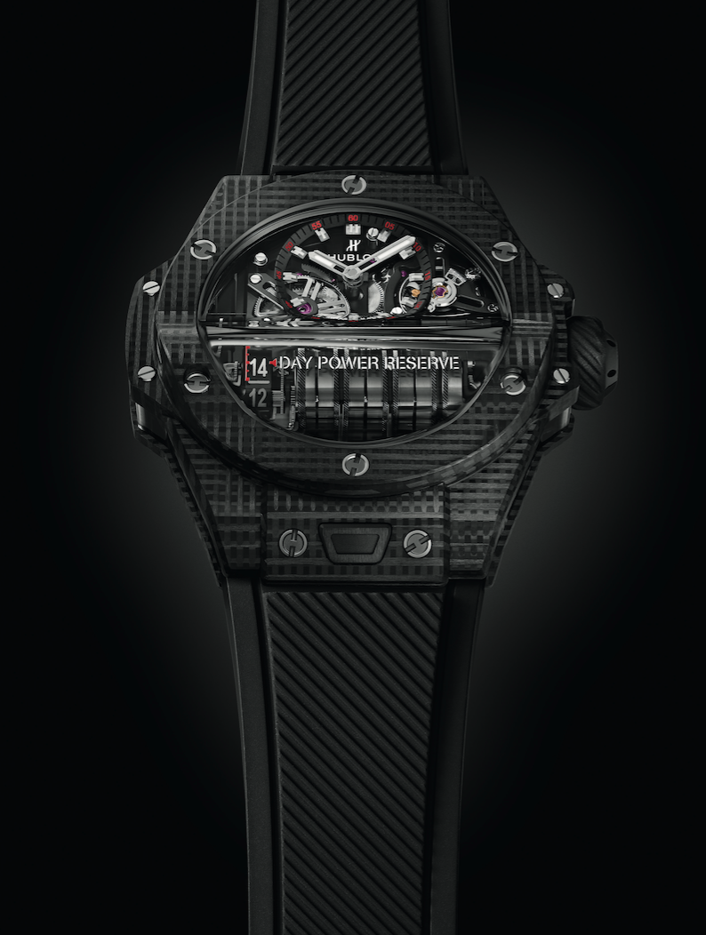 Luego del increíble MP-05 que, si bien ha sido severamente criticado por competidores en la industria, ha sido un éxito tremendo para las ventas de la marca. La “armadora” ginebrina presenta un reloj más accesible al bolsillo, sin torbellino pero que celebra una autonomía excepcional y se inspira en los motores. Desarrollado en carrocería de fibra de carbón 3D junto con resina o cristal de zafiro, seguramente veremos más animaciones a la construcción de su caja. EL movimiento está equipado con 7 barriletes en serie, este reloj brinda una autonomía de 14 días y una frecuencia de 4 Hz. Con todo y brazalete, el reloj pesa 90 gramos totales, y el calibre que da vida a la pieza lleva por nombre HUB9011.