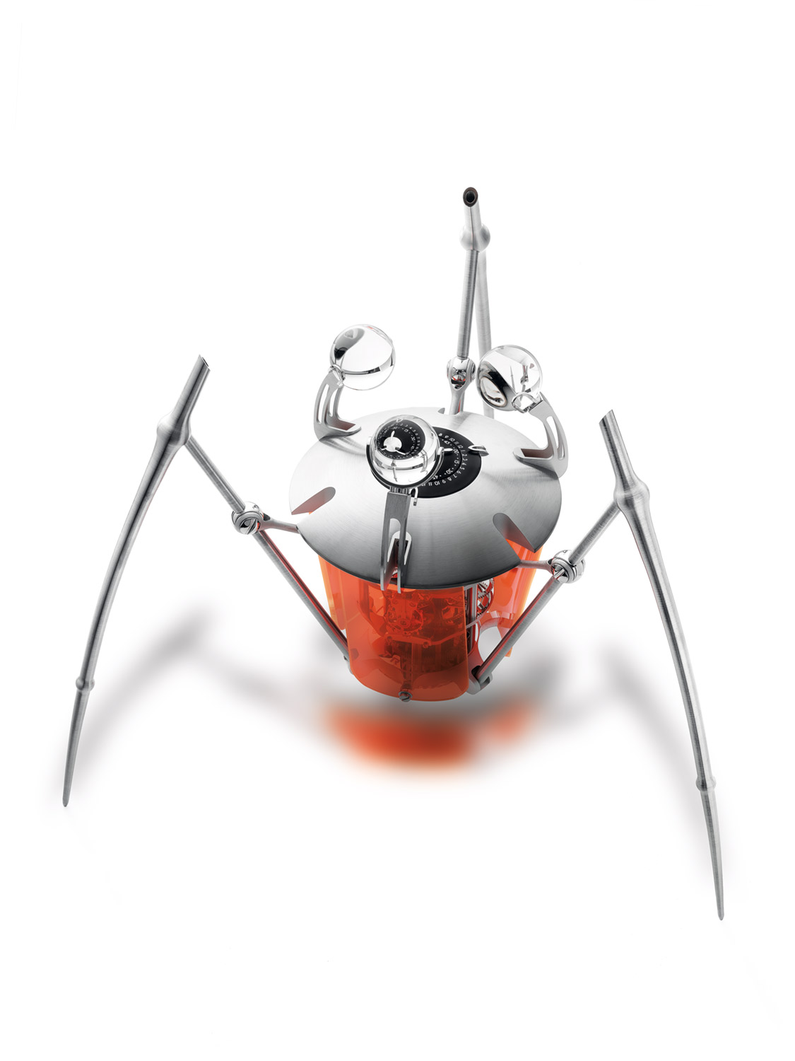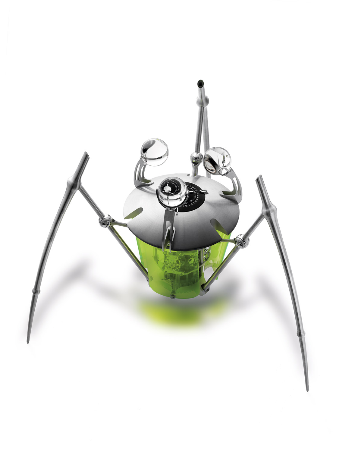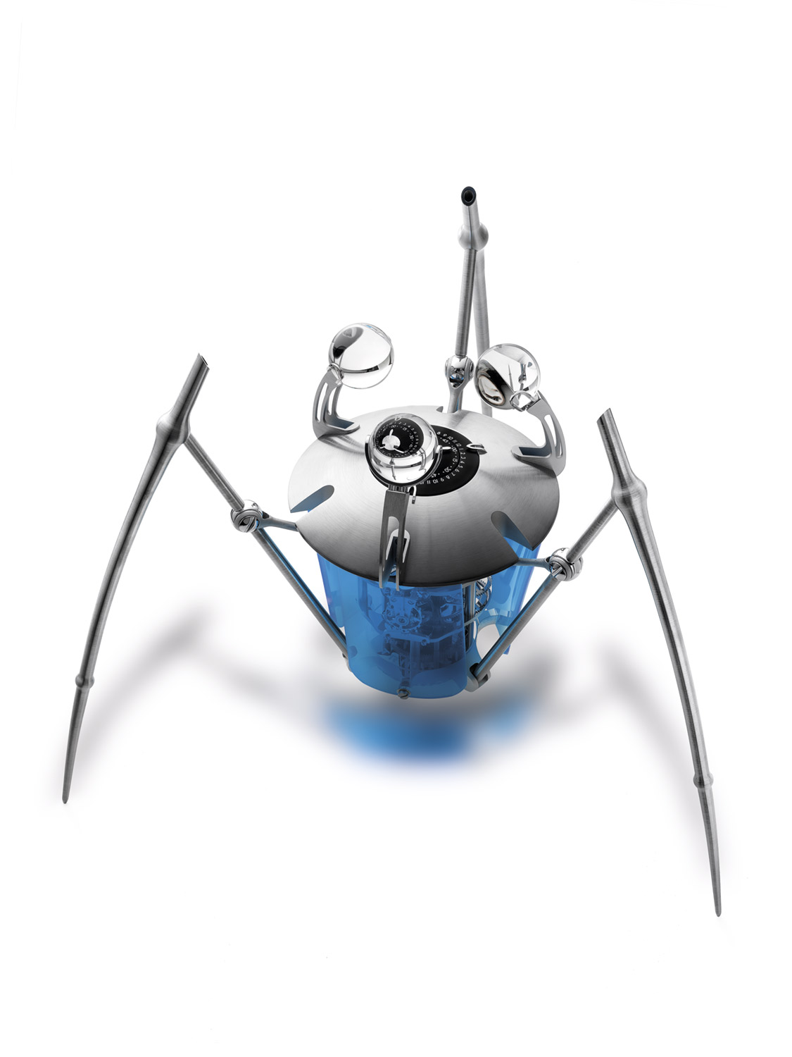 Los Robocreatures bien podrían ser futuras cápsulas del tiempo, vida fosilizada de una era prehistórica. Con Trinity, el diseñador berlinés Maximilian Maertens, el director general de L’Épée Arnaud Nicolas y Maximilian Büsser nos conducen a una era horológica prehistórica posmoderna.
