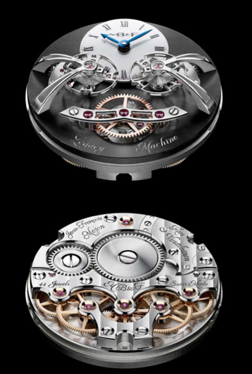 El movimiento de Legacy Machine No. 2 fue desarrollado conforme a las especificaciones de MB&F por el reconocido Jean-François Mojon (Mejor relojero en el Grand Prix d’Horlogerie de Genève 2010) y el equipo de Chronode. El aclamado relojero independiente Kari Voutilainen se aseguró de que el estilo estético del movimiento fuera consistente con la alta calidad de los relojes tradicionales del siglo XIX y le dio un acabado a mano superlativo.