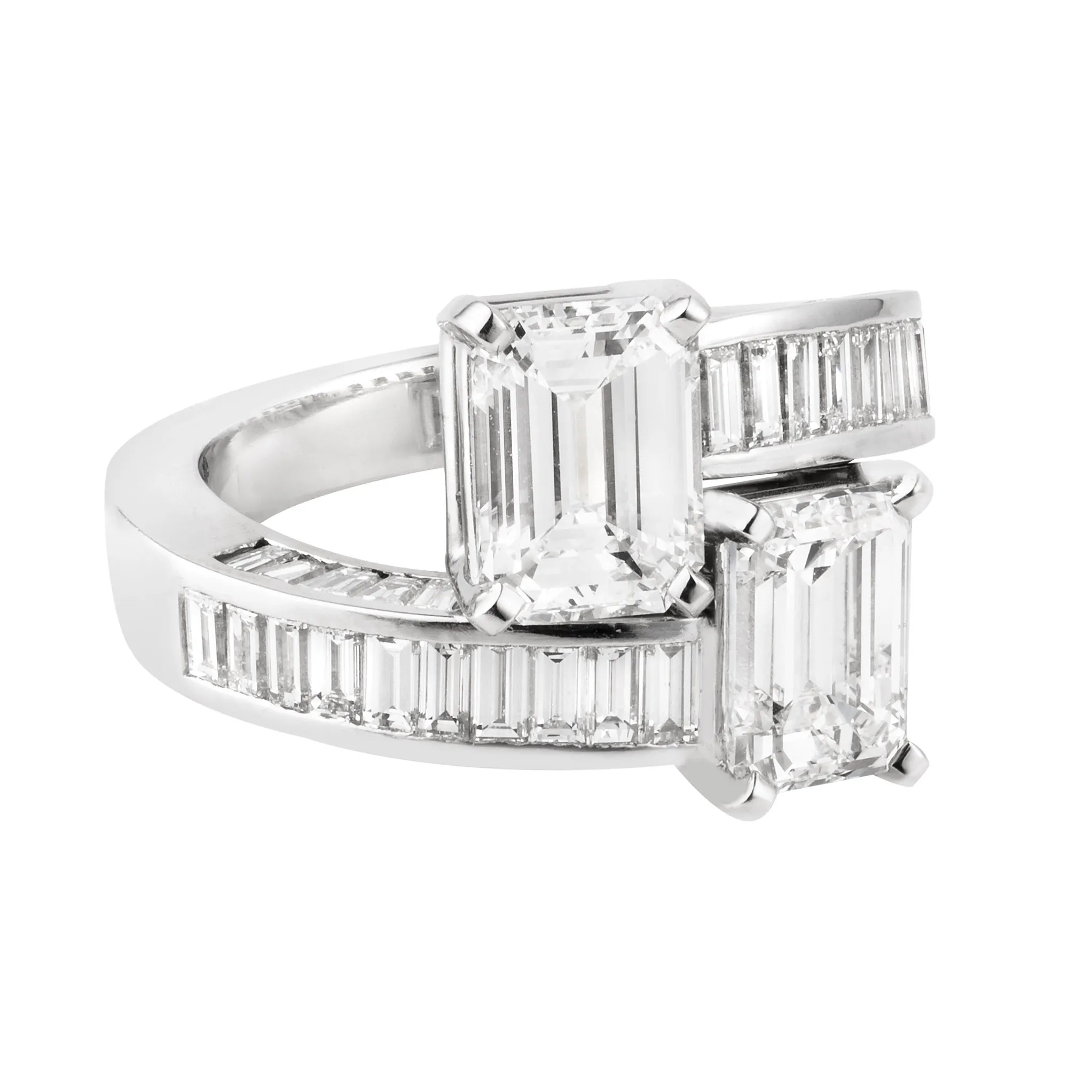 De la línea Écrin De Chimère -reproducida por el diseñador mexicano Kris Goyri-, se desprende esta magnífica joya realizada en oro blanco con diamantes corte baguette y esmeralda. El collar complementa la maestría del conjunto resaltando la elegancia y sofisticación de la mujer.