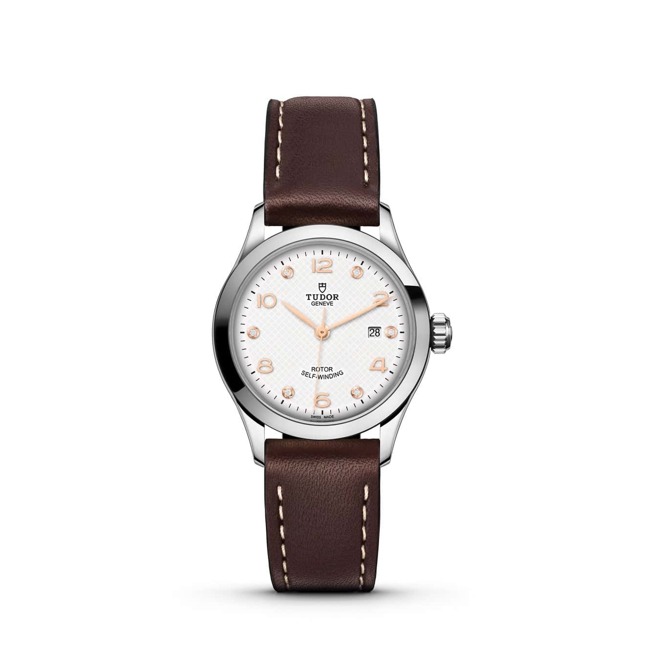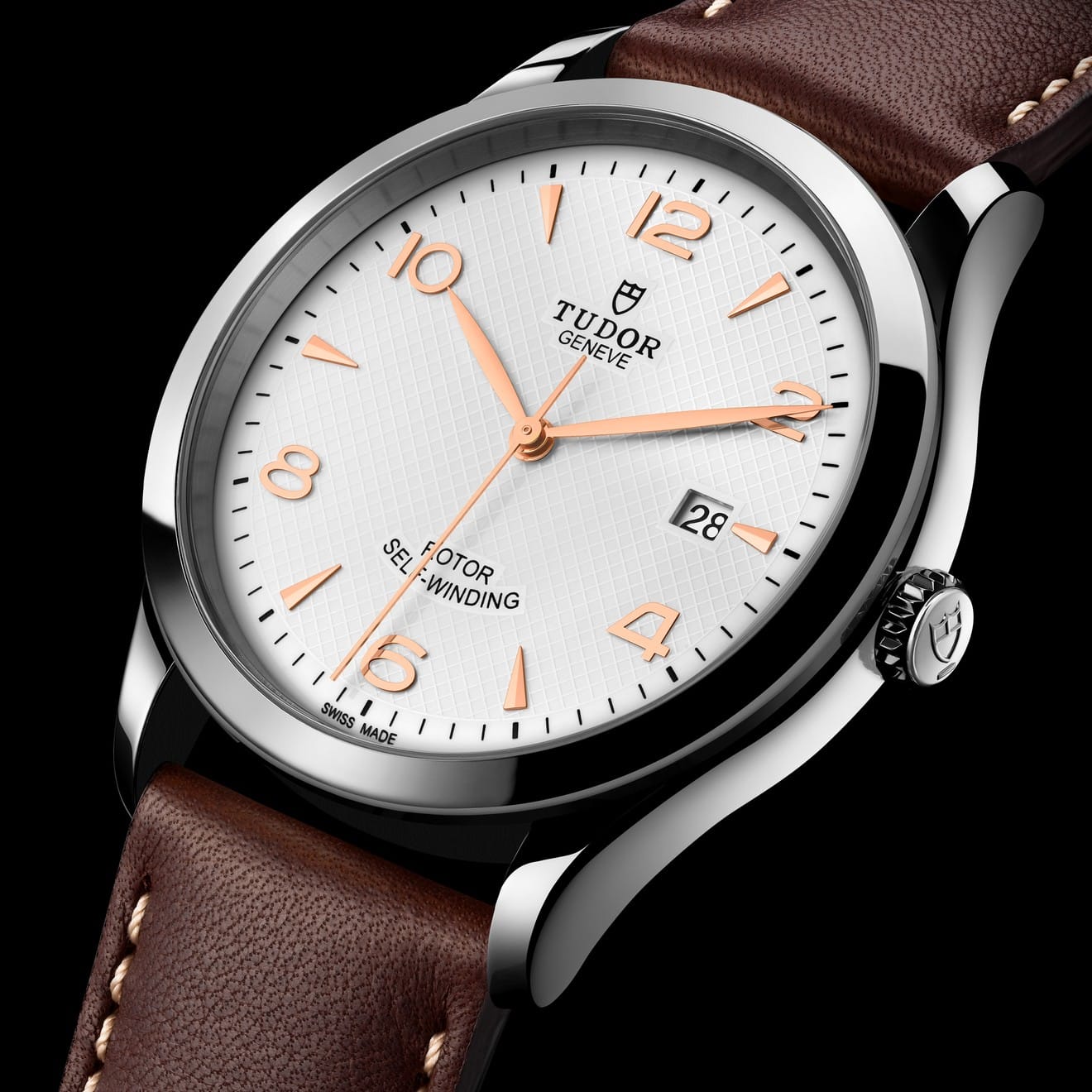 Su diseño decorado en el centro y abombado al estilo vintage cuenta con un delicado grabado que nos transporta a los orígenes de Tudor y contrasta sutilmente con la escala de minutos lisa. Disponibles en color plateado, opalino, blanco o negro, cuentan con apliques en los números arábigos pares, entre los marcadores de las horas facetados con forma de flecha.