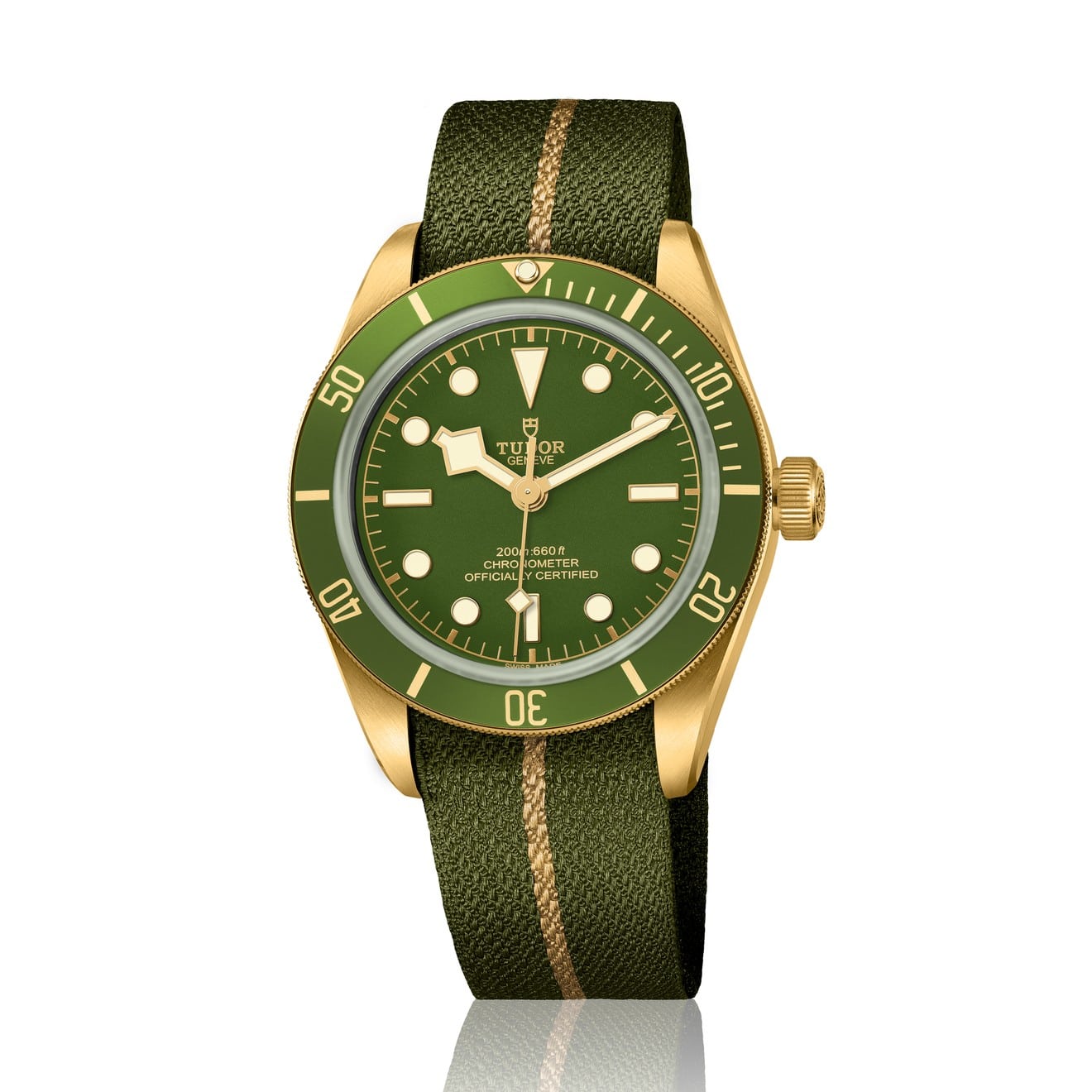 Sí, es un Tudor de oro, pero no es cualquier oro… Se trata de una nueva versión de Black Bay Fifty-Eight, relanzado el año pasado, pero ahora vestido con caja de oro amarillo de 18 quilates y con fondo de cristal de zafiro para la admiración del movimiento manufactura MT5400.