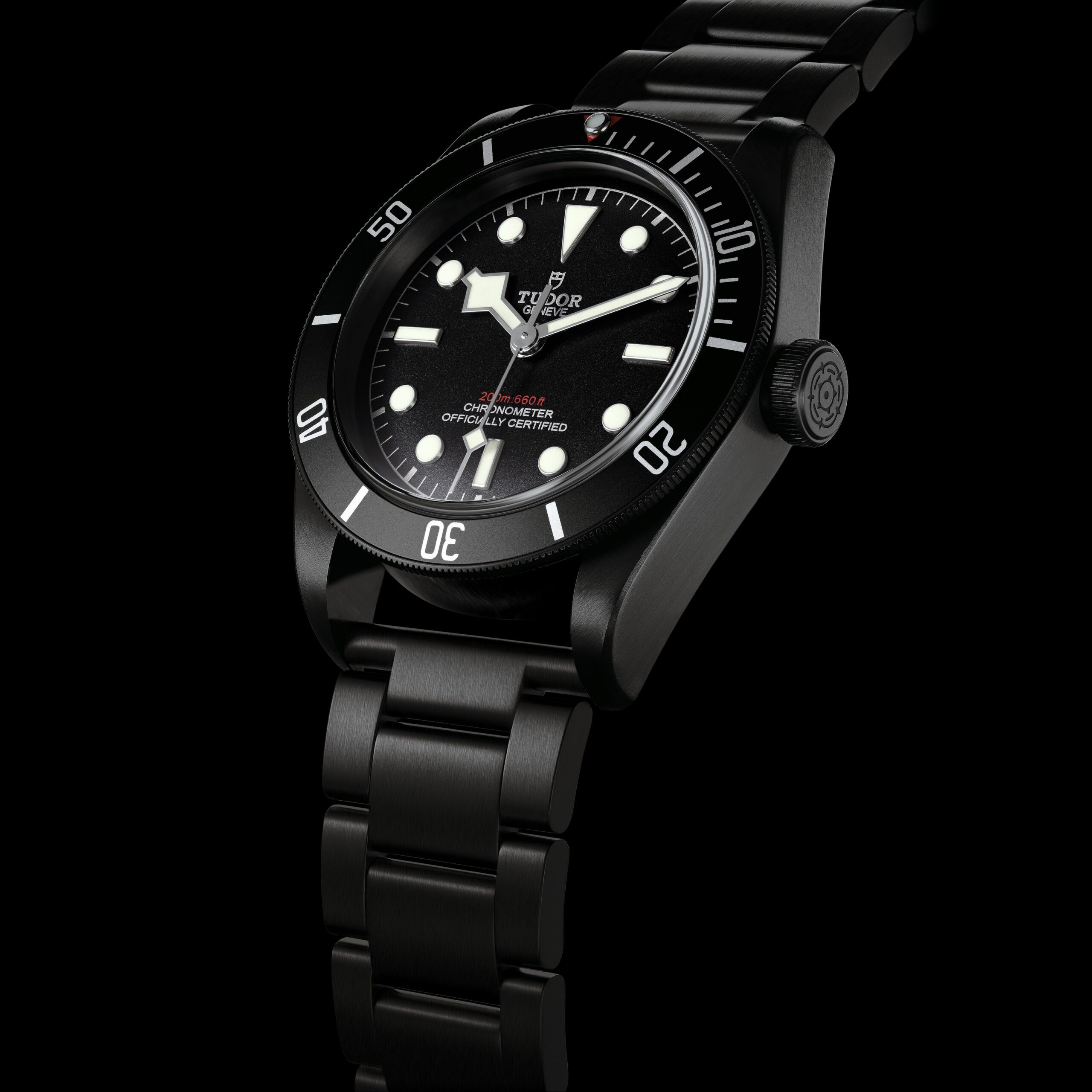 Los elementos más característicos del reloj de submarinismo en acero negro mate, el modelo más nuevo de la familia Heritage Black Bay se inspira en la historia de Tudor. Las líneas generales y el cristal y la carátula abombados son herencia de los primeros relojes de submarinismo Tudor. La corona, denominada Big Crown, es igual a la de la famosa referencia 7924 de 1958. Las agujas, con una forma angulosa muy característica, conocidas con el nombre de snowflakes, provienen de los relojes entregados a gran escala a la Marina francesa en la década de los 70. Otro elemento destacable lo representa la indicación de profundidad garantizada grabada en rojo en la carátula y con el triángulo rojo en el bisel giratorio.