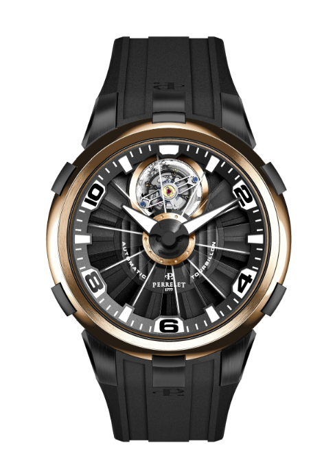 Perrelet propone tres versiones —acero con tratamiento DLC negro y acero natural, All-Black u oro rosa y acero con tratamiento DLC negro— presentadas con brazaletes de caucho negro. A nivel general, el diseño del Turbillon aúna energía y elegancia con un espíritu absolutamente contemporáneo. Esta exclusiva colección se presenta en una edición limitada de 60 piezas, de las cuales existen únicamente 20 para cada versión.