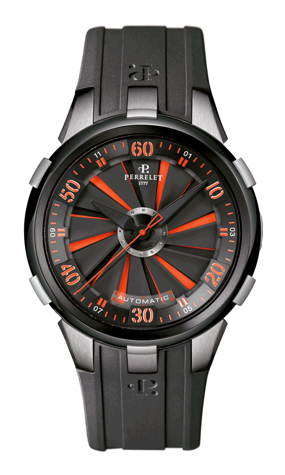 Heredero del descubrimiento que sigue palpitando en todos los relojes automáticos, Perrelet sitúa el movimiento en el centro de sus prioridades. Prueba de ello fue el exclusivo módulo Doble Rotor que patentó en 1995 y que dio origen al calibre P-181 con remonte automático, base del emblemático modelo TURBINE.