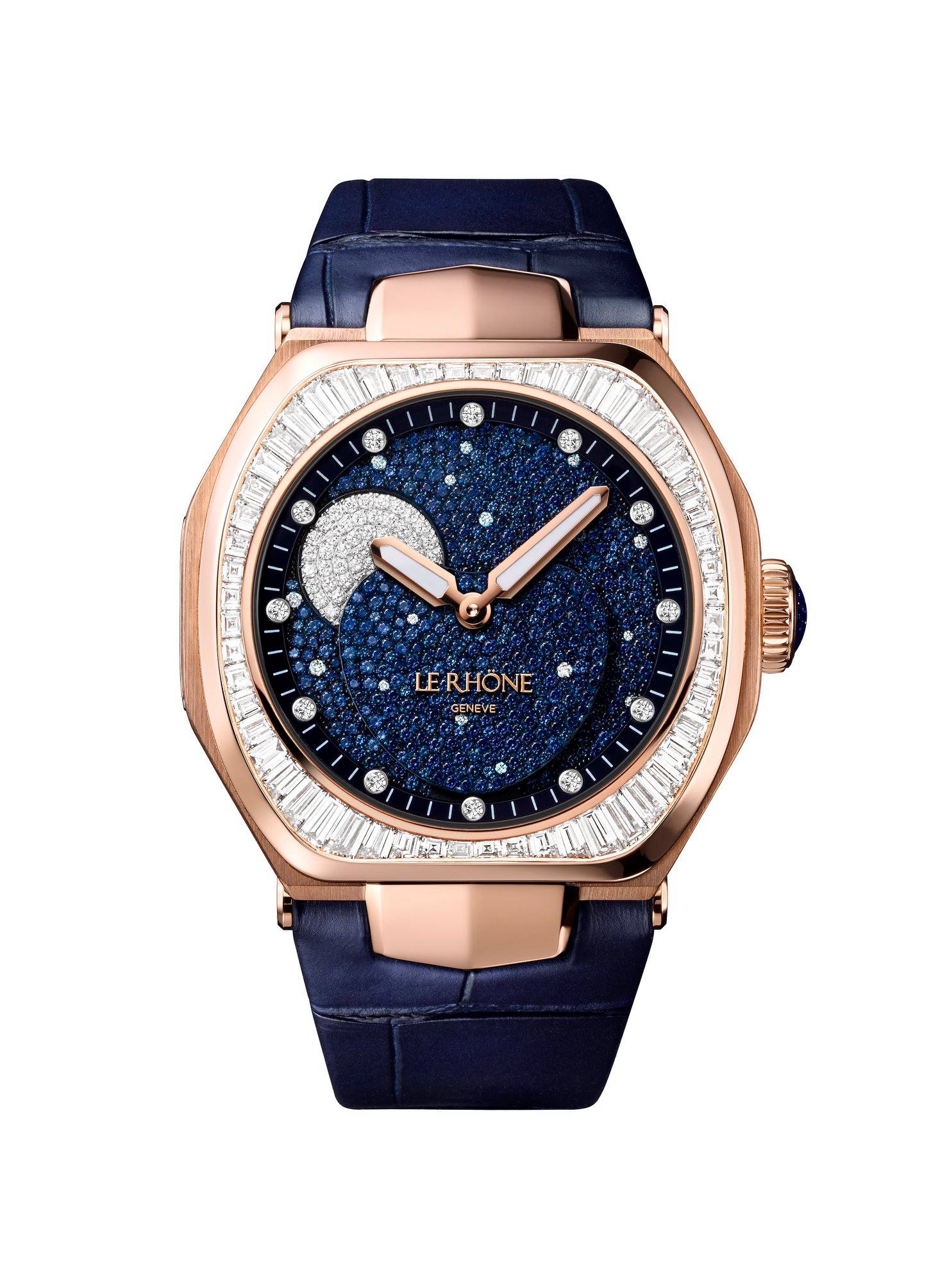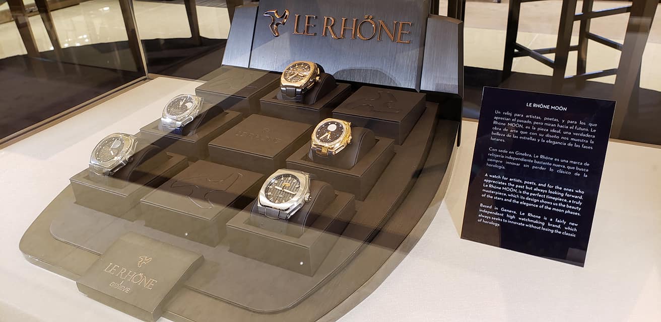 Nacida en 2013 bajo la idea de desarrollar relojes inspirados en los muscle car con su colección Road Racer. Le Rhöne dio un golpe de timón en 2017 a fin de incorporar todo el savoir-faire de la poesía relojera y las complicaciones que simplifican la vida. Para ello, echó mano del magistral trabajo de engastado salpicado con tratamiento luminiscente. Además de un tipo de complicaciones realmente sorprendentes. Un GMT saltante de 24 horas y un doble torbellino con hora saltante. Para esta exhibición itinerante, la firma viajó sus referencias más aplaudidas, como el majestuoso Act One Starry Night.