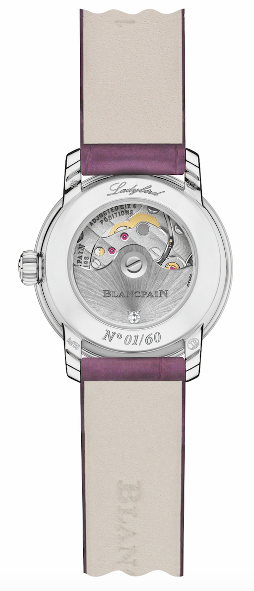 El reloj está equipado con el nuevo calibre automático 6150 y una caja de 15.7 mm de diámetro y 3.9 mm de espesor. Esto permite al Ladybird continuar con su título como uno de los relojes más pequeños del mundo, pero ahora en una edición limitada a 60 ejemplares que incorporan contrastes luminosos en la carátula para otorgar distinción y delicadeza a su portador.