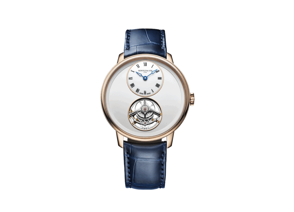 Ultrathin Tourbillon Gold de Arnold & Son presume una carátula de auténtico ópalo blanco