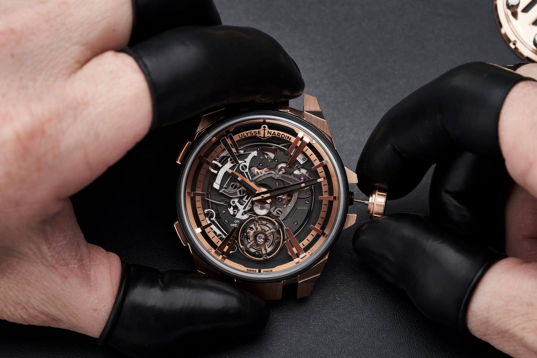Para lograr estos objetivos, los relojeros de Ulysse Nardin han desarrollado el Calibre UN-621. Para garantizar un funcionamiento óptimo y dotar de precisión a este primer movimiento de sonería automático de manufactura íntegramente desarrollado por Ulysse Nardin, lo han equipado con un tourbillon volante.