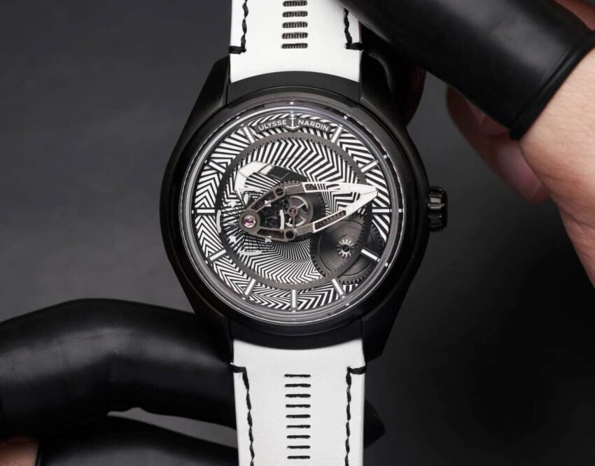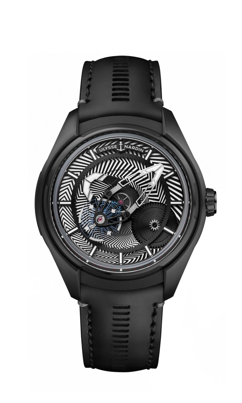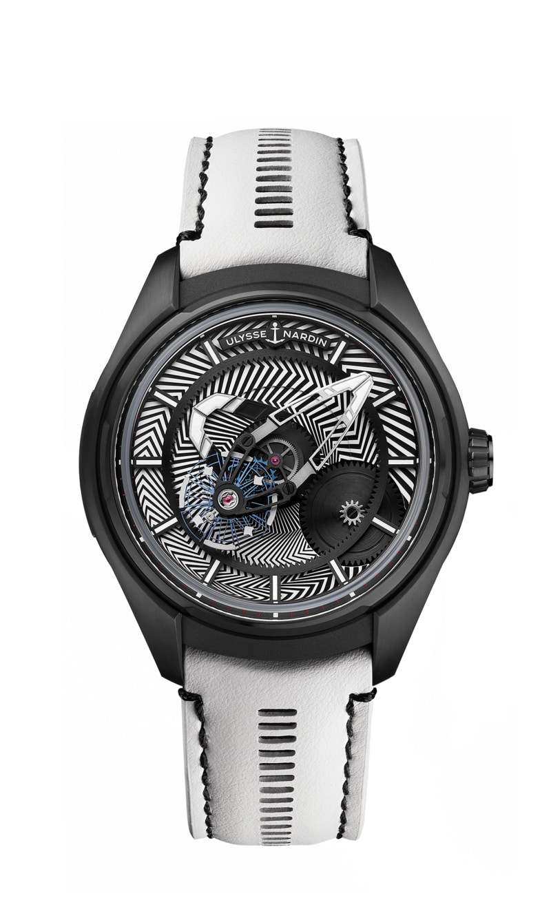 Para completar la intrincada combinación de colores en blanco y negro del Freak X Razzle Dazzle, Ulysse Nardin entrega el reloj con un par de correas.