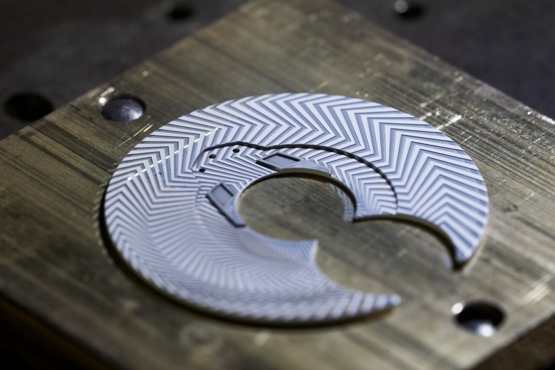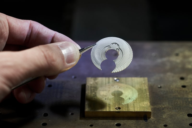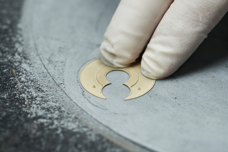 Con una combinación mate de superficies pulidas y pulidas con chorro de arena, este diseño de caja deja un mínimo de destellos en las imágenes para distraer la atención de la complejidad visual de la carátula. Del mismo modo, el diseño general de la caja es minimalista, con un puñado de toques distintivos como un bisel con muescas y una construcción en capas para aumentar la línea fluida ininterrumpida que va desde la punta cónica hasta la punta de los cuernos. En la parte posterior, un fondo de zafiro brinda una vista del calibre de manufactura.