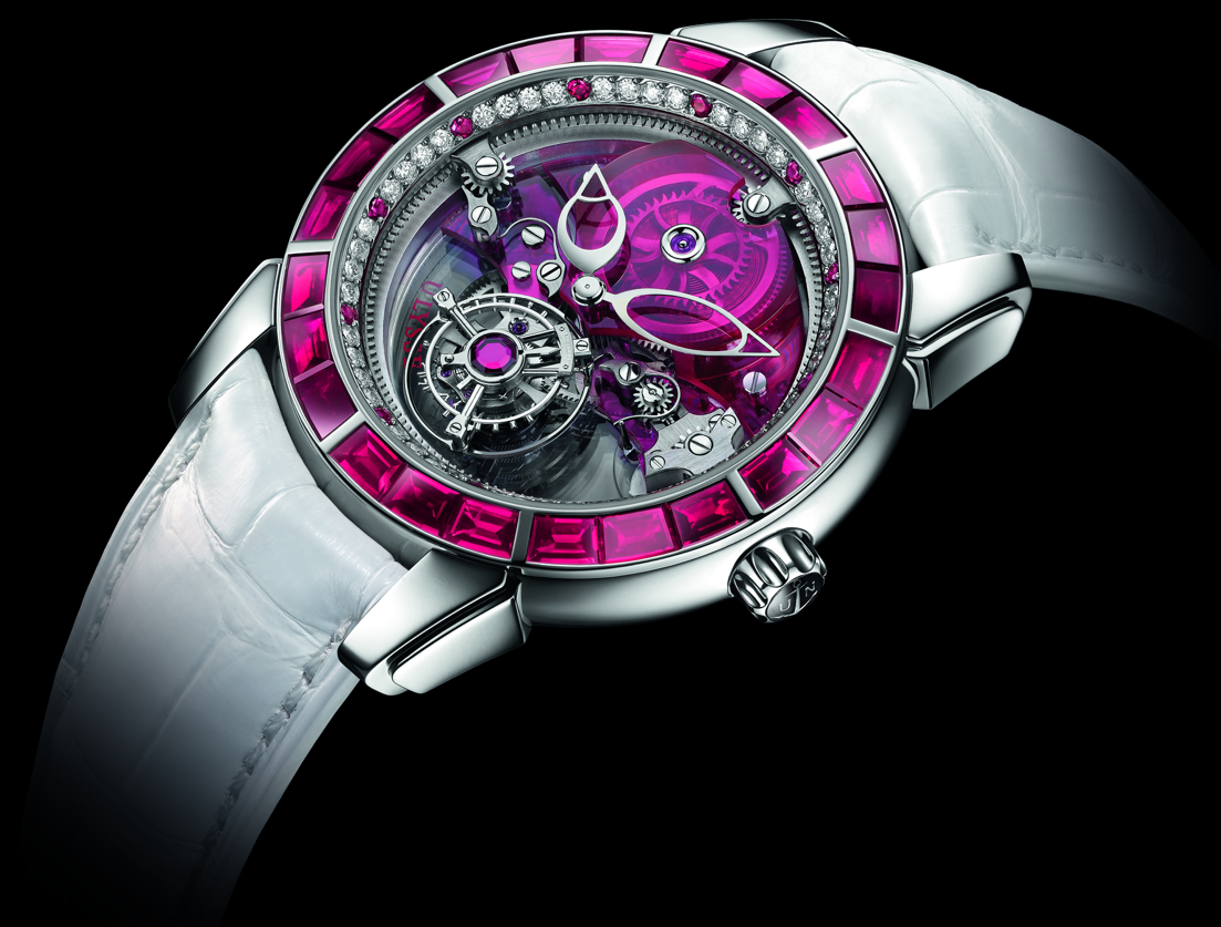 El ahora gemelo del Royal Blue Tourbillon –una obra maestra mecánica embellecida con zafiro–, el Royal Ruby Tourbillon es una extraordinaria representación de relojería en su máxima expresión.