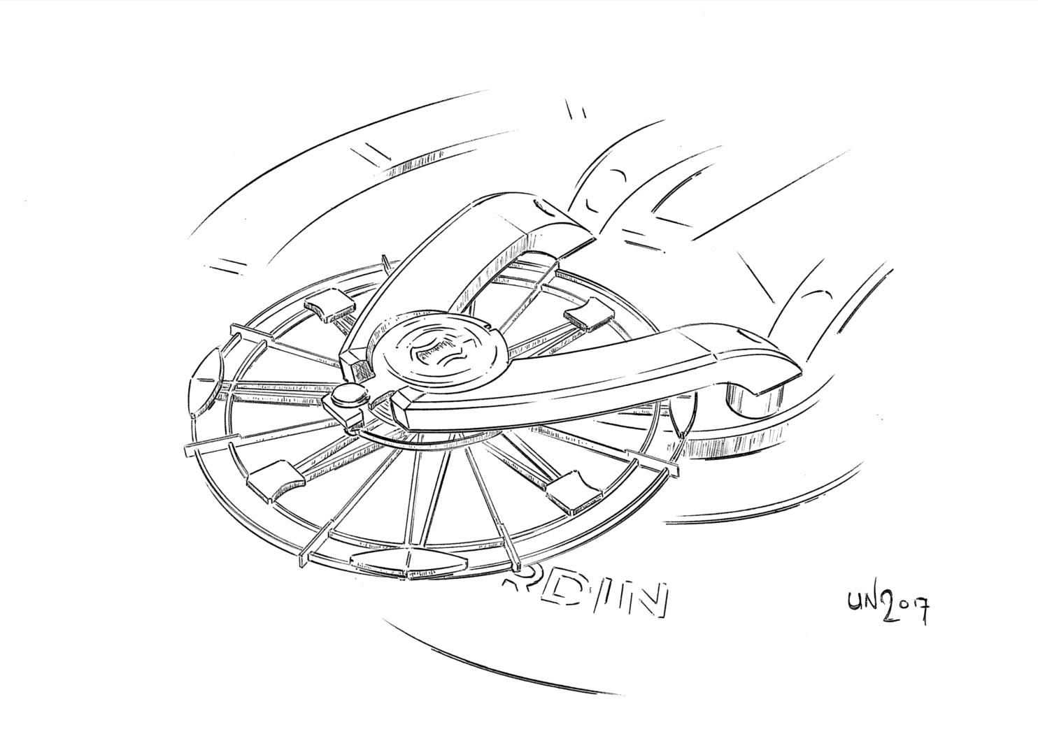 Sin embargo una cosa es “alardear” y la otra es ejecutar. Es así que Ulysse puso manos a la obra a fin de desarrollar el primer reloj automático de la línea Freak. La manera en la que remontúa ha sido bautizada y patentada como Grinder… Y es que si bien las invenciones del reloj automático datan de 1770, pero fue en los años 30 cuando se desarrolló el rotor mecánico unidireccional, Grinder aprovecha el más mínimo movimiento de la muñeca gracias a que la masa oscilante está conectada a un marco con cuatro brazos. Ello permite al sistema automático tener el doble de fuerza mientras que un mecanismo de guiado flexible limita considerablemente la fricción.