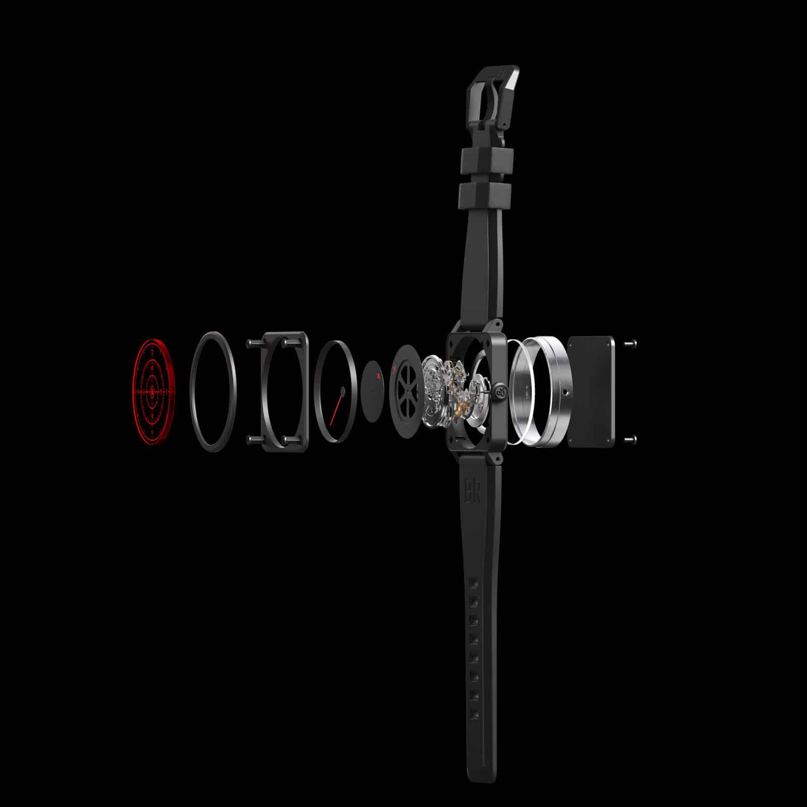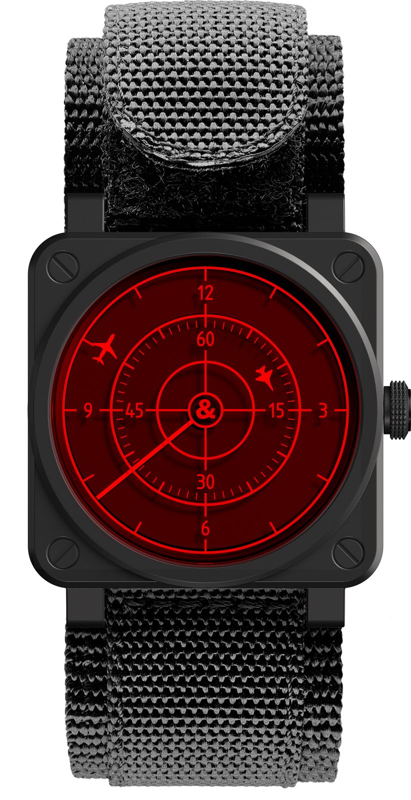 Red Radar rompe las barreras de la relojería tradicional a partir de gráficos de un radar de control de aeronaves. La hora se puede leer mediante un sistema de discos giratorios combinados con una aguja analógica. La carátula está protegida con un cristal de zafiro rojo.