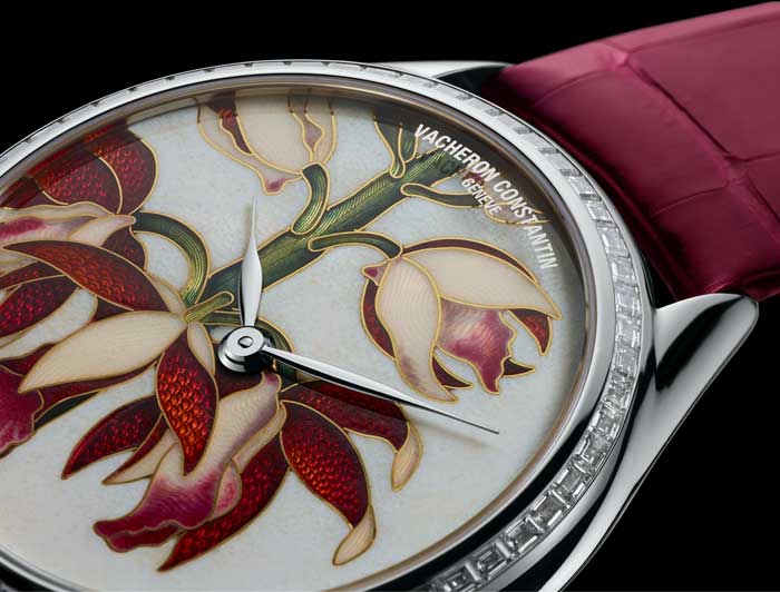 Vacheron Constantin celebra el legado cultural de este trabajo artesanal, mismo que se basó en la experiencia única de un atelier extraordinario y de Anita Porchet, una artista independiente que se especializa en miniatura de esmaltado. La obra de arte, que se reproduce en grabados guilloché y esmaltes cloisonné, cobra vida en una profusión de color. Cada línea confiere una ilusión de profundidad y perspectiva increíble, resaltado por un bisel engastado con diamantes.