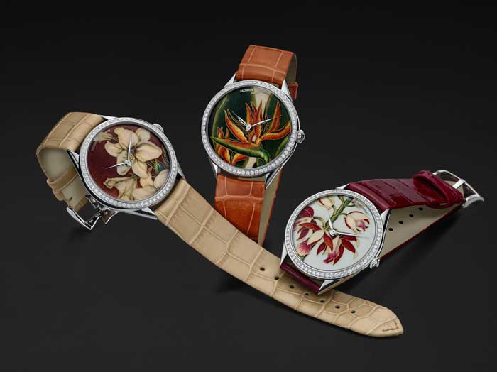 Este año, y por primera vez en esta colección excepcional, una nueva obra llamada Métiers d’Art Florilège ha sido creada exclusivamente para las mujeres. Esta trilogía rinde un homenaje vibrante a la delicadeza ilustración botánica inglesa del siglo 19. Las plantas, que han sido conceptualizadas en las carátulas de los relojes, pertenecen a las ilustraciones de Robert John Thornton The Temple of Flora publicado en 1799, las técnicas artesanas empleadas por la Manufactura, hacen uso del: esmaltado, guilloché y engastado.