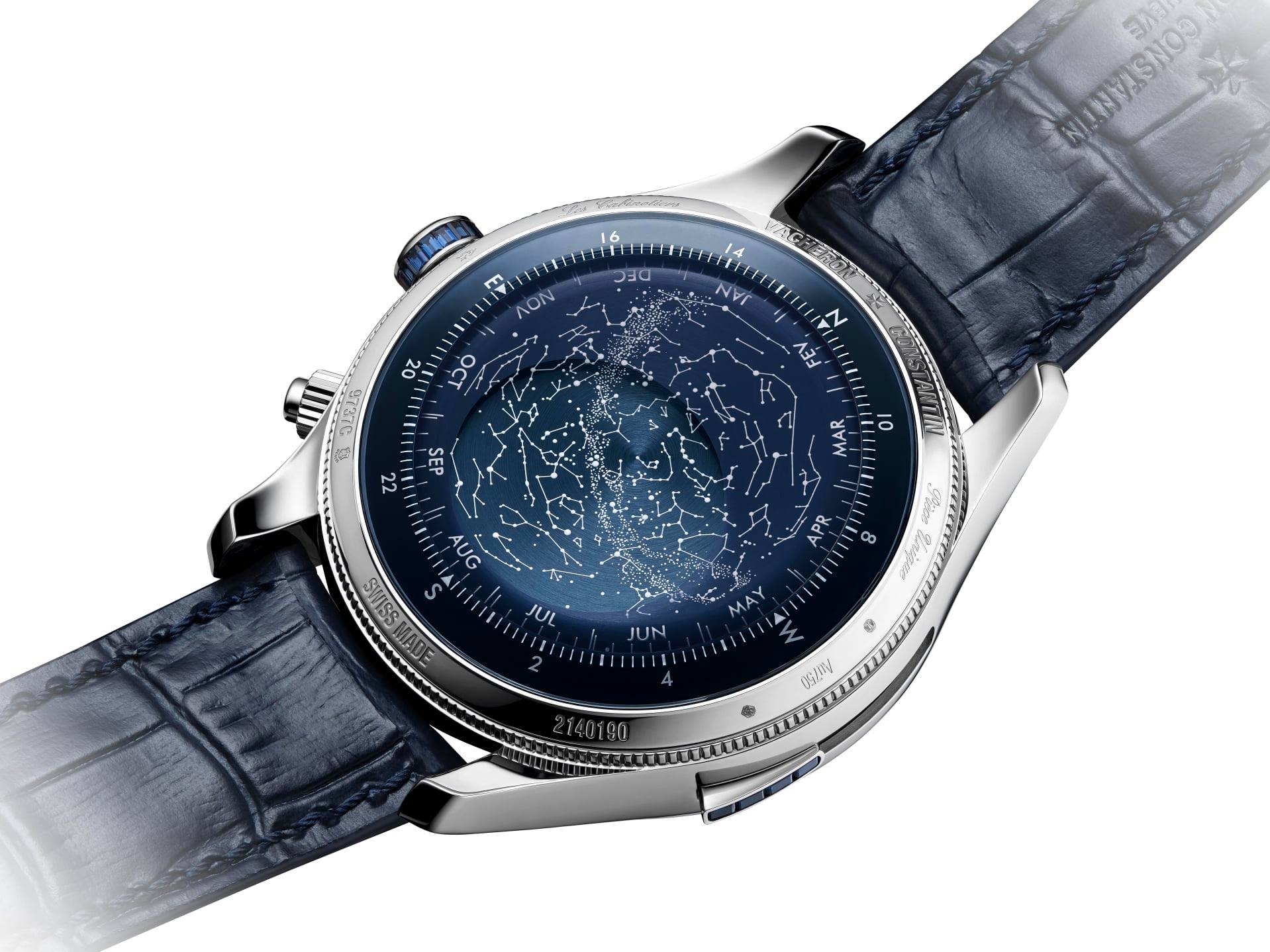 La carta celeste, que se muestra a través de la parte trasera del reloj en una esfera cóncava diseñada para acentuar el efecto de profundidad, ofrece una sorprendente vista de la Vía Láctea y de las constelaciones que aparecen en tiempo real, como si estuviéramos mirando a través de un telescopio.