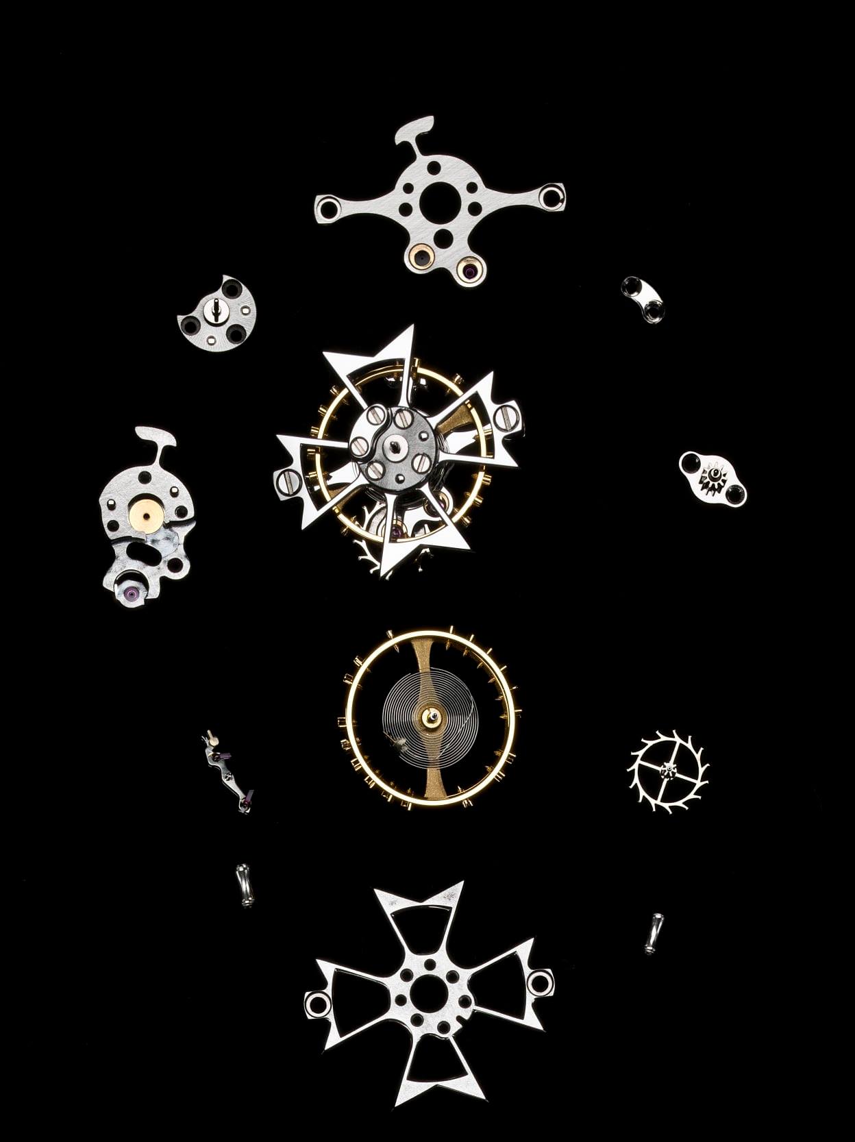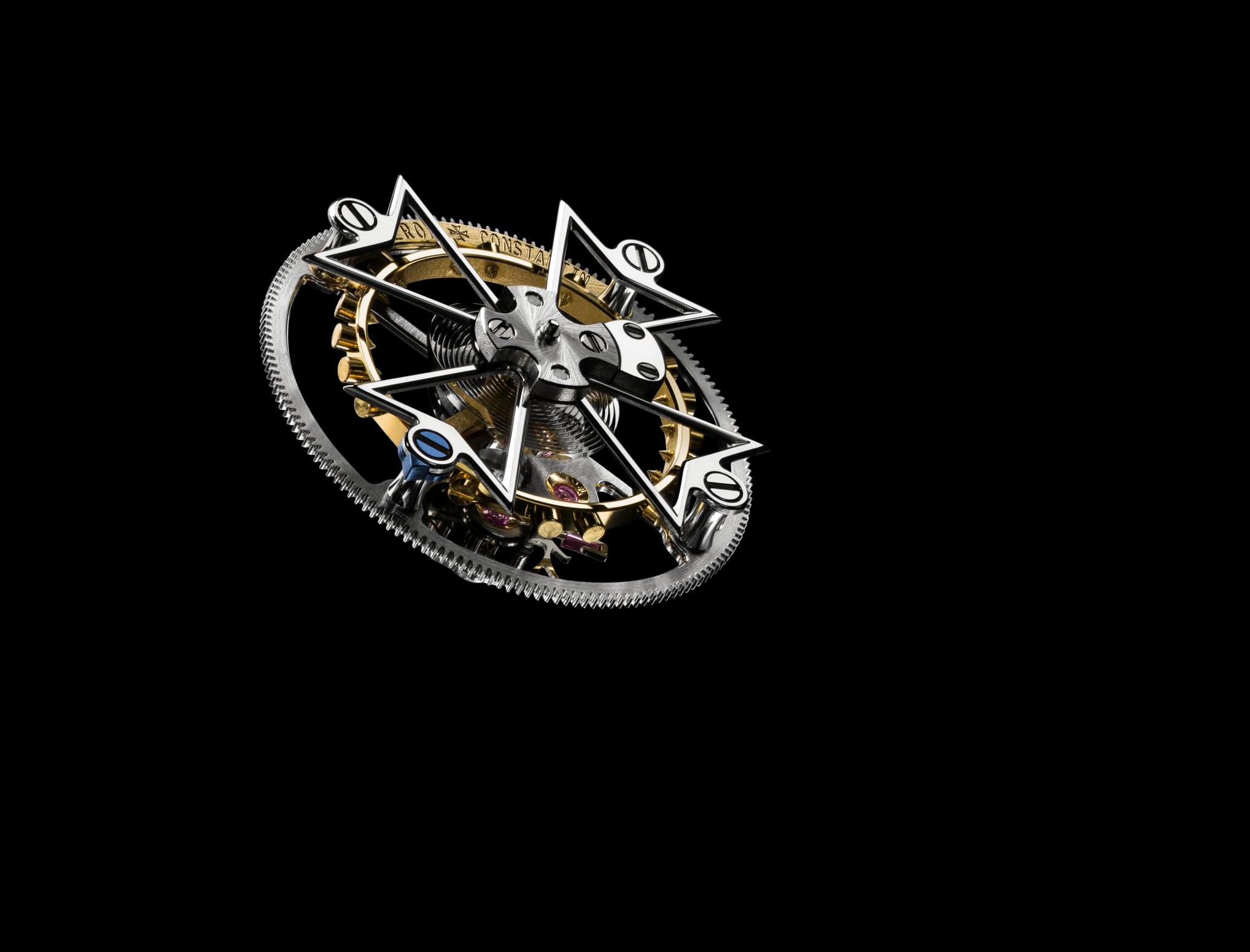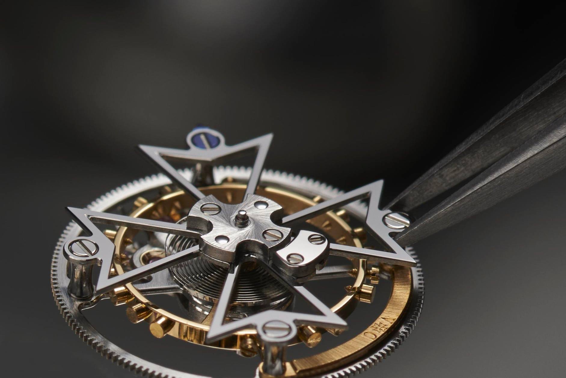 Este tourbillon se distingue por su jaula en forma de cruz de Malta, emblema de Vacheron Constantin desde 1880, y por una barra de fijación en la que las delicadas operaciones de  acabado, que incluyen el biselado y el pulido manual, requieren 36 horas de trabajo.