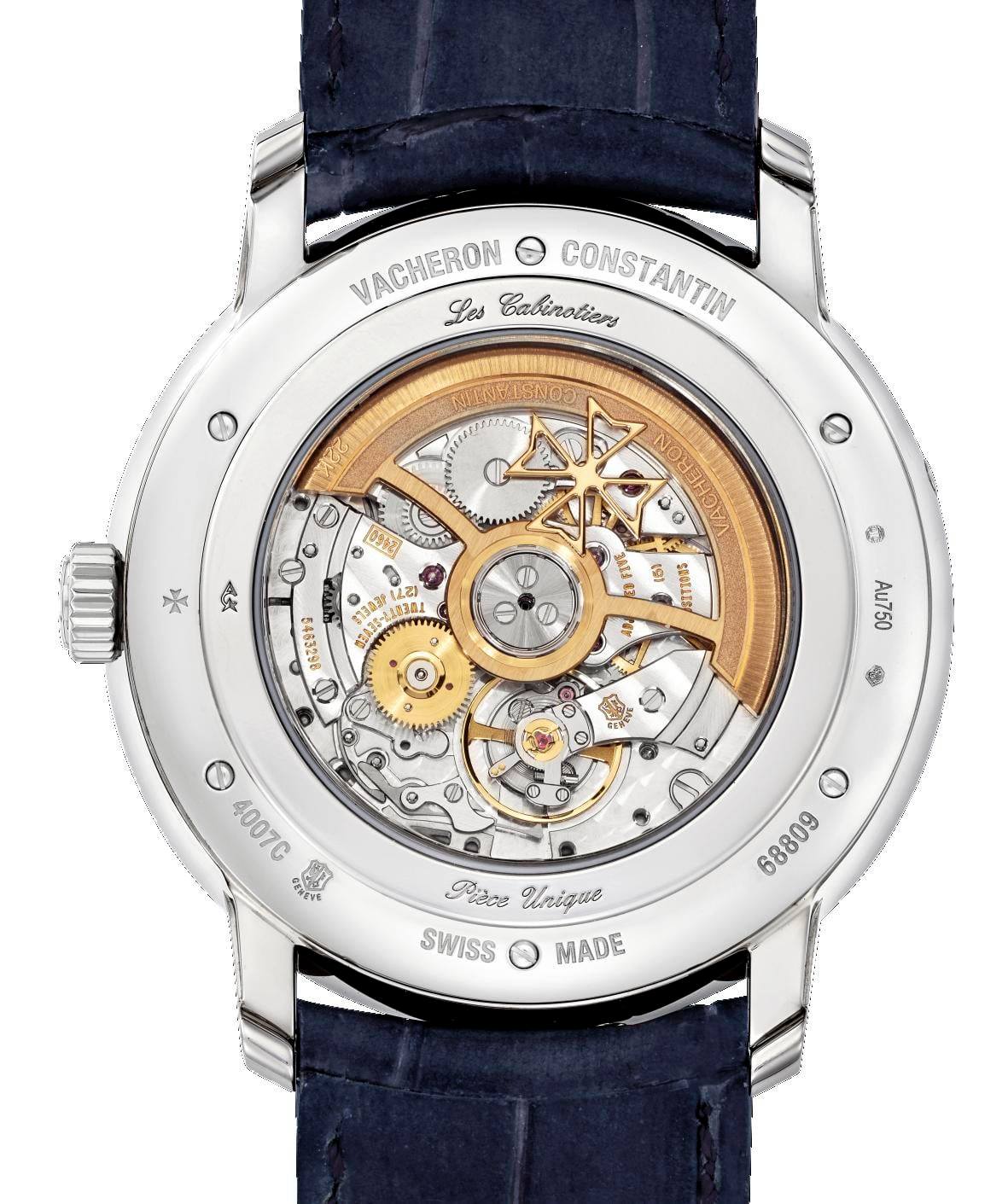 Accionado por el calibre automático 2460 RQP, este reloj también está dotado de un calendario perpetuo. Una complicación que sigue los caprichos del calendario gregoriano sin necesidad de corrección alguna antes del año 2100, y que en este modelo se caracteriza por la indicación de los días y los meses en las aberturas situadas a ambos lados de la carátula de las horas, y la indicación del año bisiesto a las 4 en punto.