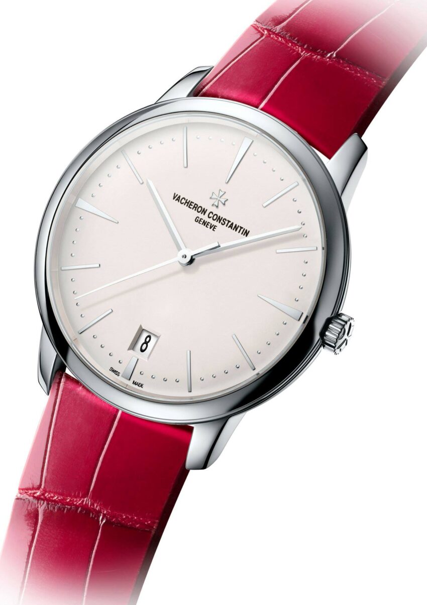 La personalidad de este modelo Patrimony automático queda expresada a través de la delicada una carátula opalina y minutería perlada, que permite una correcta visualización de la hora, los minutos y los segundos, además de la fecha en punto de las 6 horas.